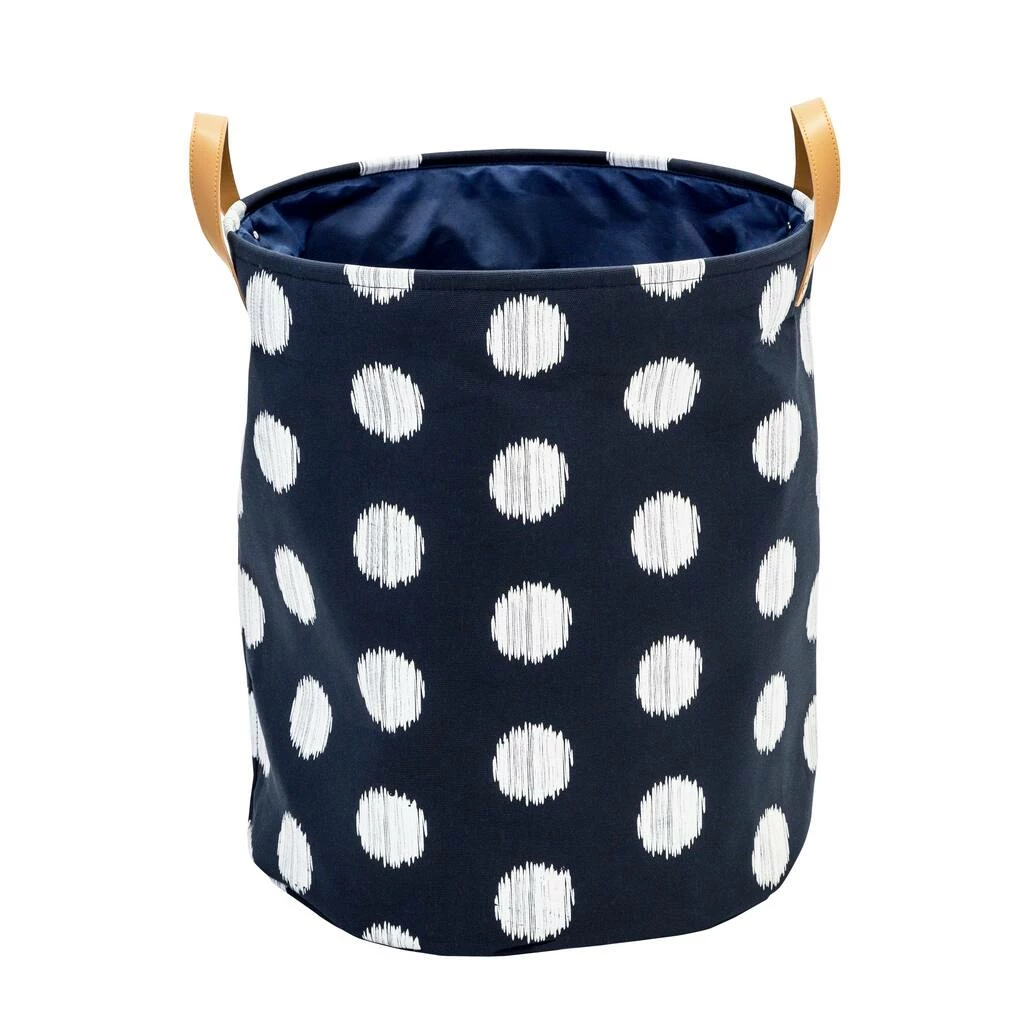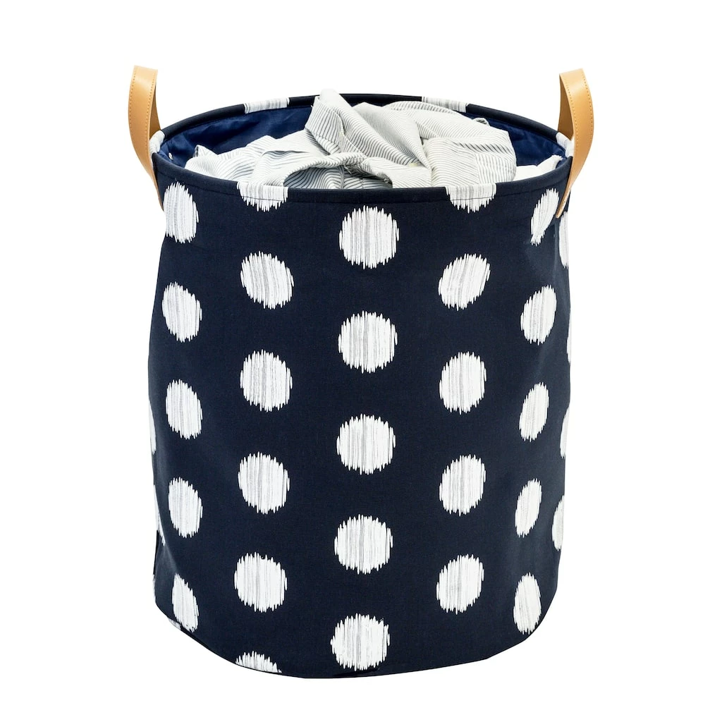 Your laundry room needed some spunk, so you said hello to this Decorative Portable Laundry Bin from the Coastal Collection. The canvas hamper comes strapped with two faux leather handles, a cotton liner and the gumption to handle your just-worn gym clothes. Now doing laundry (sort of) sends you to your happy place with its fresh-faced polka dot pattern. Itβs also helped you figure how to store extra bedding and linens in style. Light in weight but tough and beautiful, this hamper excels around the home.