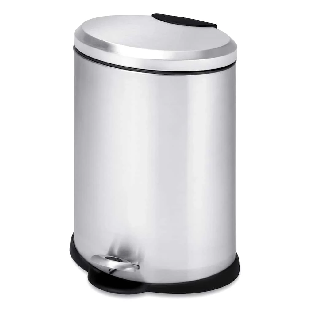 A contemporary addition to any home or office, this trash can boasts sturdy construction for daily use. The steel foot pedal provides hands-free operation to keep germs at bay and a plastic inner trash bucket is fully removable for easy emptying and cleaning. The brushed stainless, hand print resistant exterior is easy to clean and features a plastic fold down carrying handle.