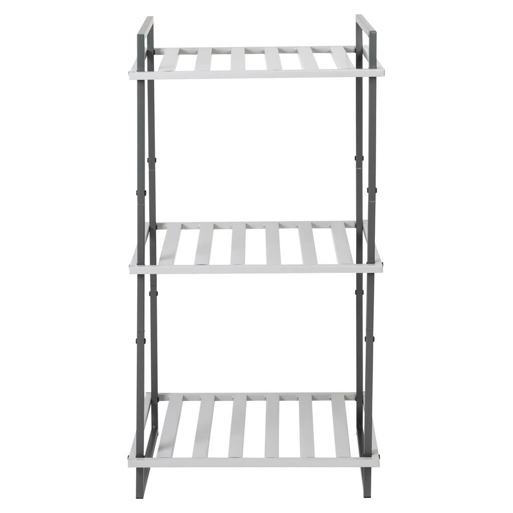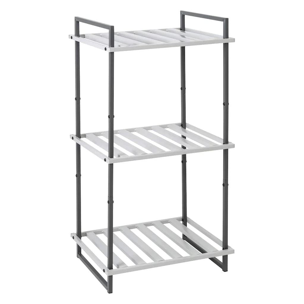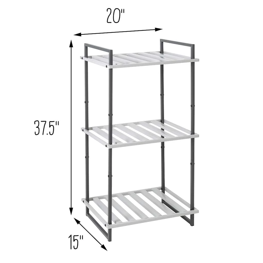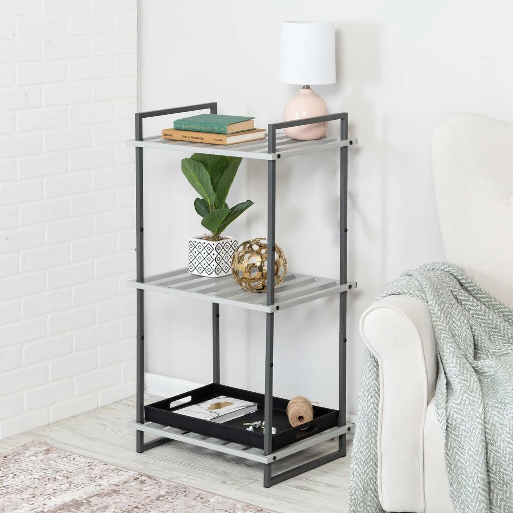 Stylish and practical for home storage, this three-tier metal shelf can store dΓ©cor, personal items and more in your home. With three slatted metals shelves, what you see is what you get. And for this shelf, what you see is a contemporary metal tube design finished with cool contrasting gray tones. It’s a piece that’s subtle, yet hard to miss.