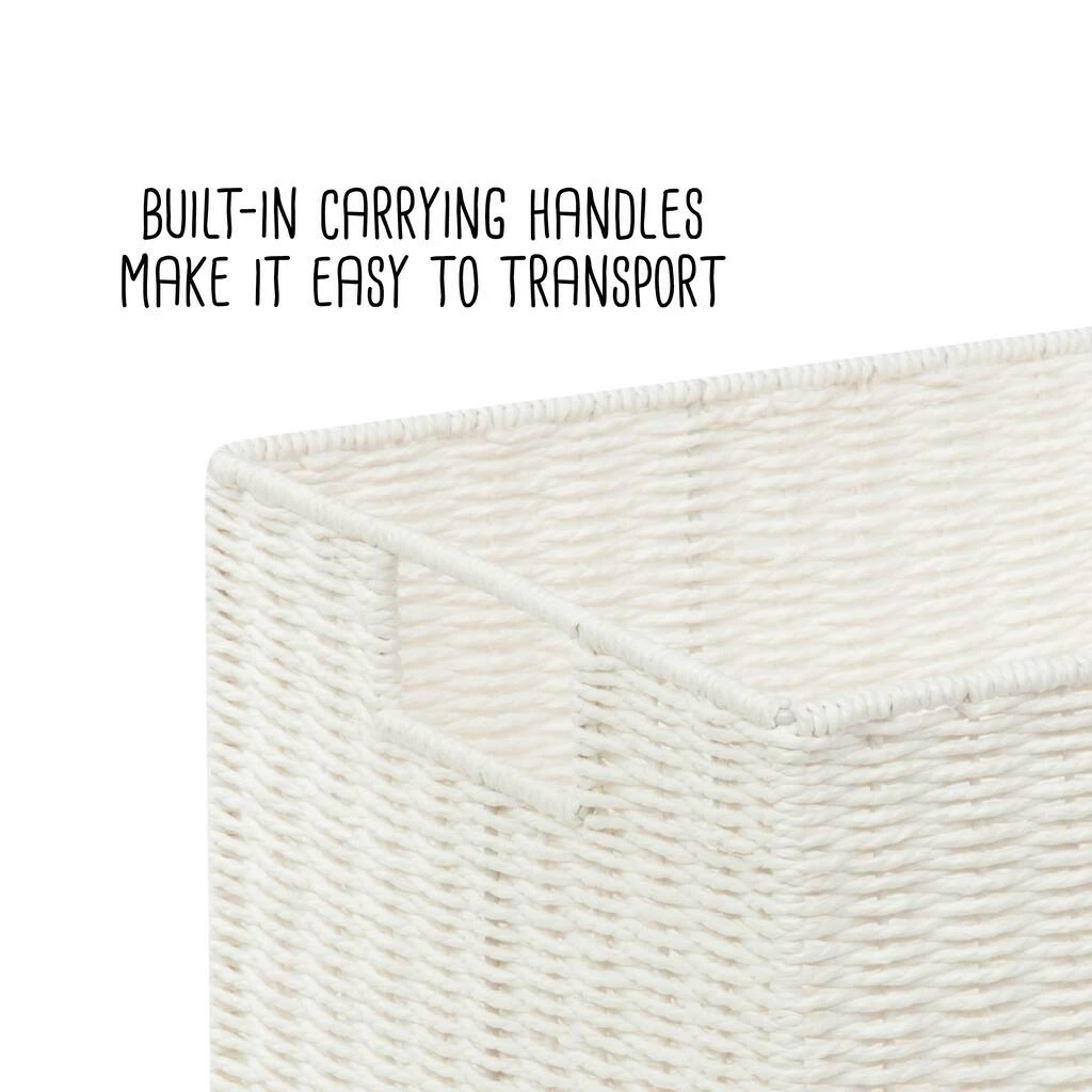 Keep clutter at bay with our paper rope crate basket. The recycled and repurposed parchment is formed into strap-like fibers, making the crate durable and eco-friendly. The wire frame adds to its strength, and the built-in carrying handles make it easy to transport. This crate provides endless storage options for any room of the house and its neutral color matches any dΓ©cor.