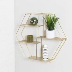 Cheap βοΈ Honey Can Do 21″ Gold Hexagonal Decorative 4-Tier Metal Wall Shelf π