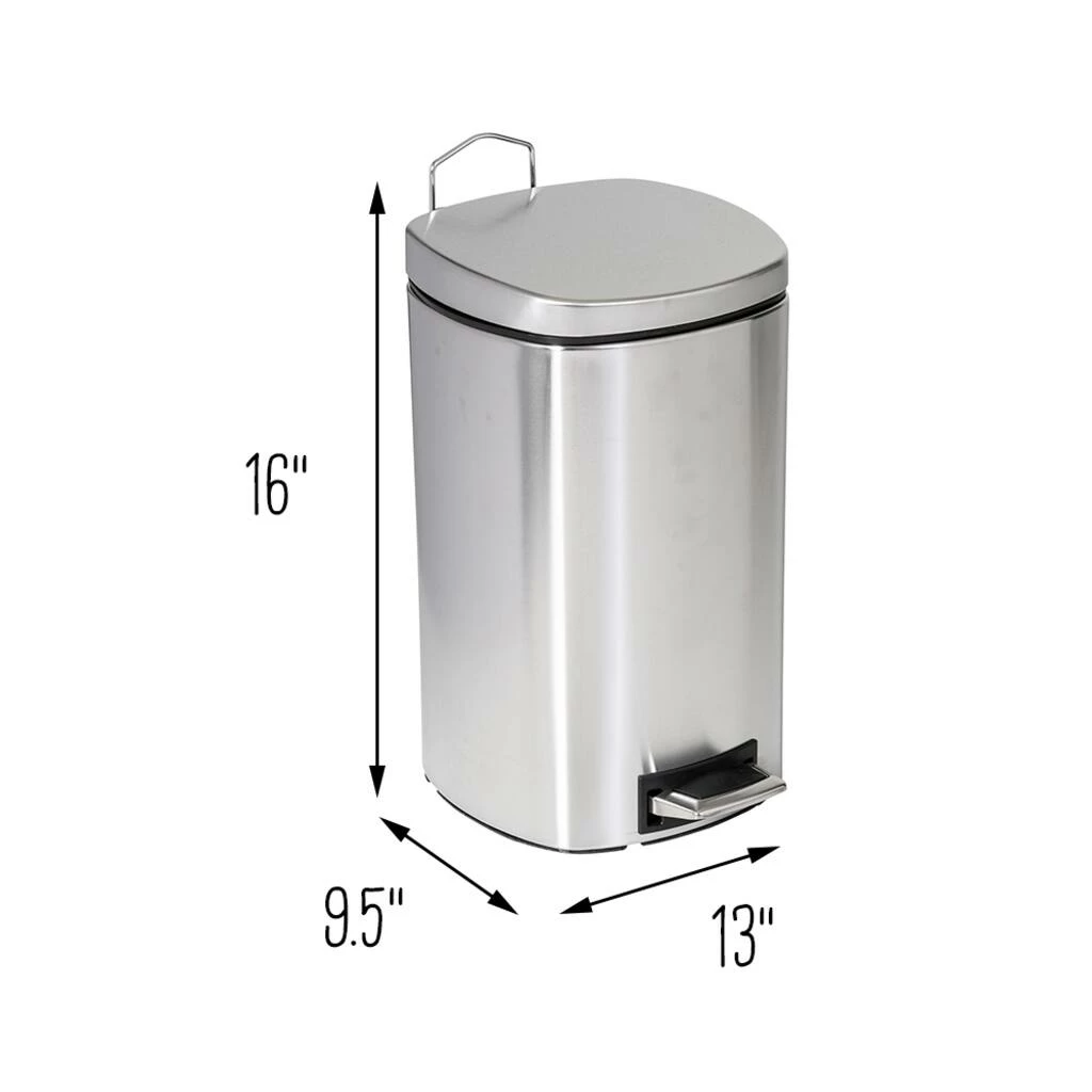 A square is a sturdy shape, which is important when that shape is holding garbage. This square stainless steel trash can is less likely to wobble or tip over like its rectangular counterparts, boosting the brawny and industrial aesthetic at the core of a stainless steel design. A step pedal makes it easy to pitch apple cores or banana peels without having to balance a cutting board and a trash lid. That same lid has a soft-close feature, so it’s whisper quiet while concealing the foul sights and smells underneath.
