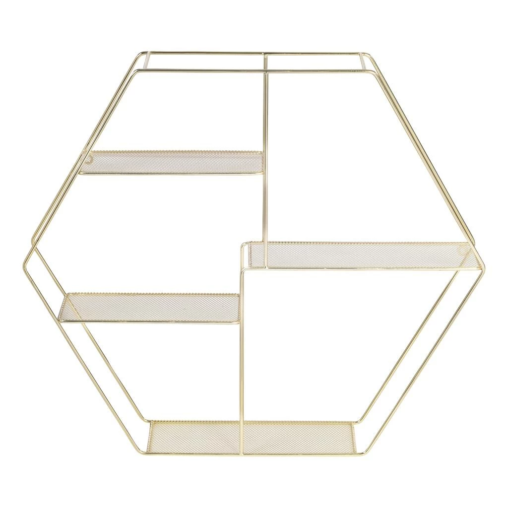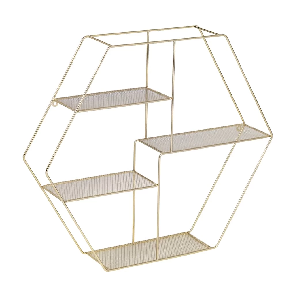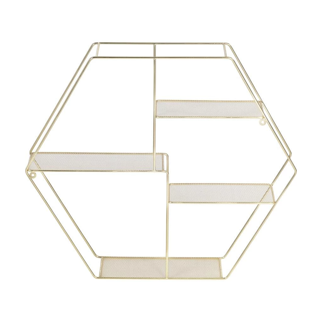 This decorative hexagonal wall shelf makes an arresting addition to the aesthetic of any space. Whether itβs used to display a favorite set of pictures frames or a collection of a exotic tropical house plants, this golden four-tier shelf is sure to draw plenty of glances.