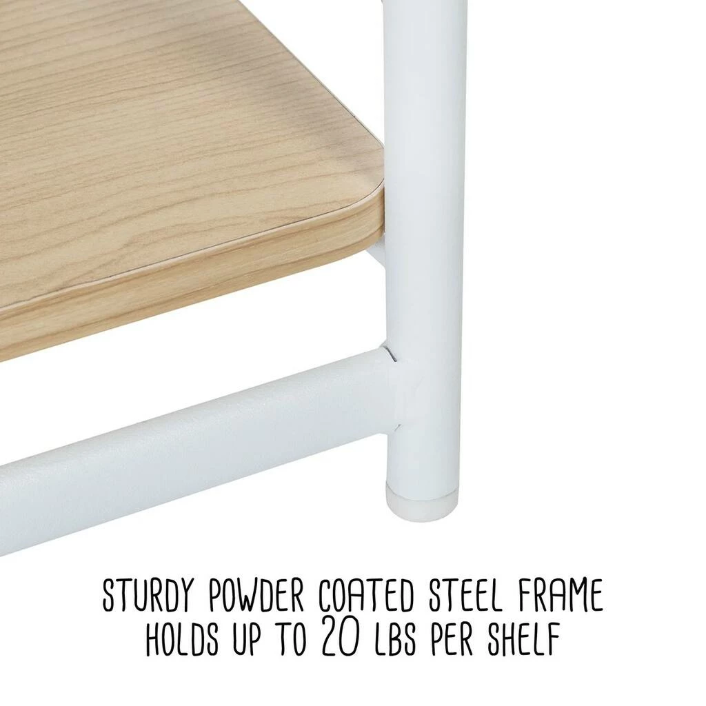 If your desk surface has turned into more of a filing cabinet, this 3-tier shelf might help. Its generous storage space restores desks back into workspaces. With a frame constructed from steel, and shelves coated with a protective veneer, this shelf can handle a haul of heavy books; baskets of cables and cords; or something light and fun, like a leafy plant or a framed photo.