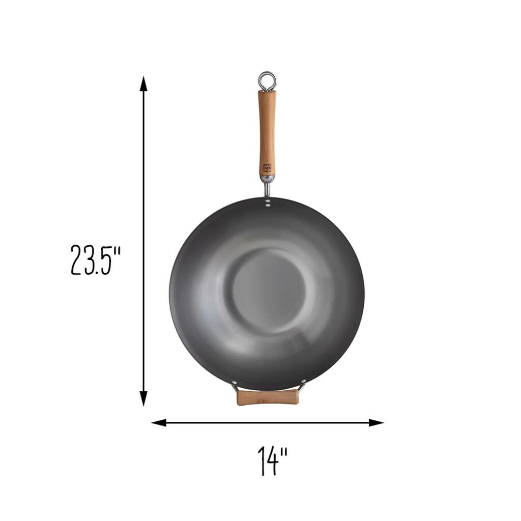 Both Wirecutter and Serious Eats have raved about this large carbon steel wok—and you’re about to as well. Perhaps you’ll be charmed by how nimble this flat bottom wok can be, its lightweight carbon steel making it easy to stir, flip, or shake food to perfection. Or maybe you’ll swoon over how much heat this pan can absorb, searing that perfect char onto veggies and meat without scorching. Either way, your love for this wok will grow stronger as it ages. Season before use by rinsing off all residue, wiping away moisture with a paper towel, putting it back on the stove and applying a thin layer of vegetable oil until warm and then removing the wok from heat and letting air-dry. Season it regularly and as you season it, its patina will deepen and darken in a beautiful way, eliminating any chance rust will set in. Also included in this set are a tidy nonstick steel lid, a handy bamboo wok spatula, and an inspiring recipe booklet for years of yummy meals.