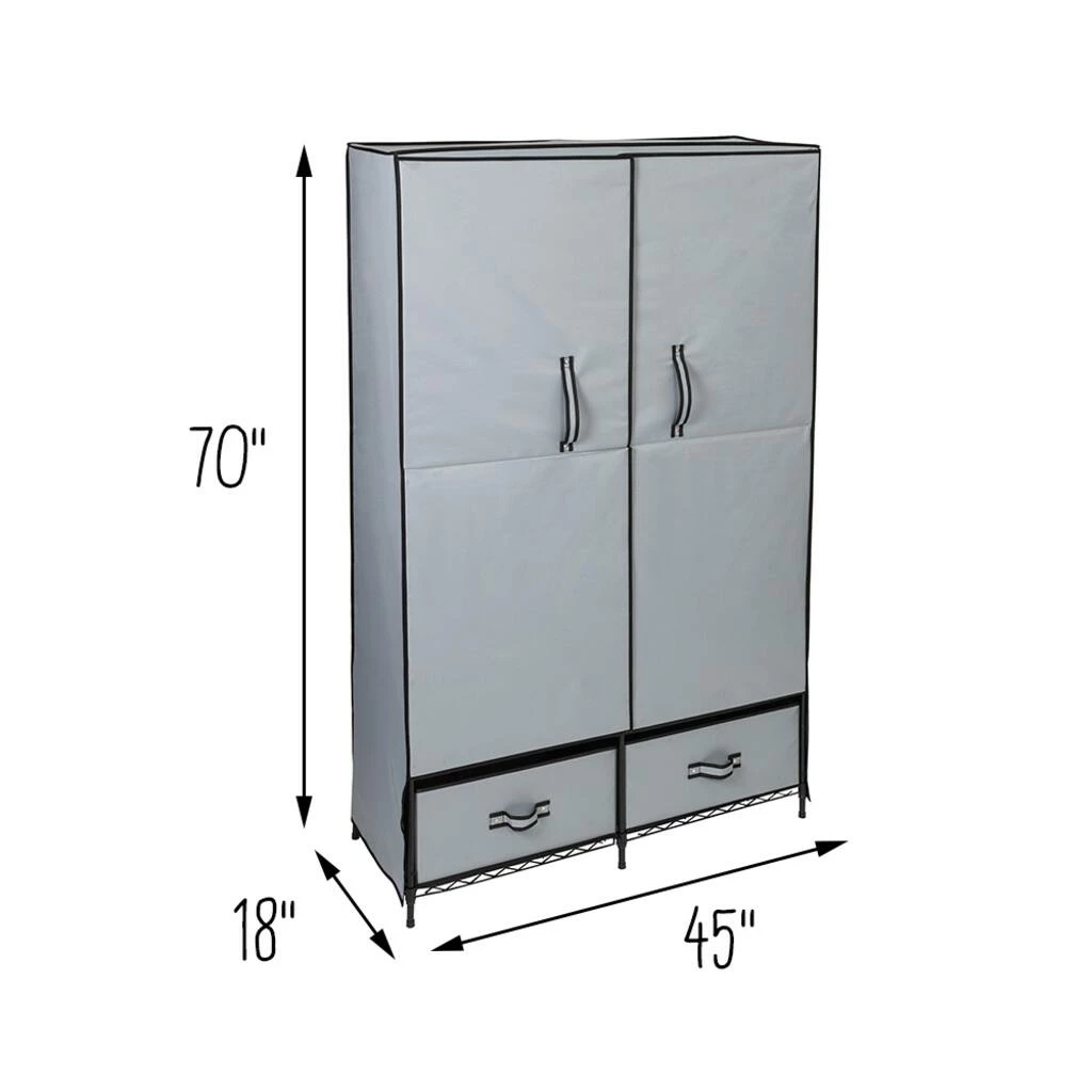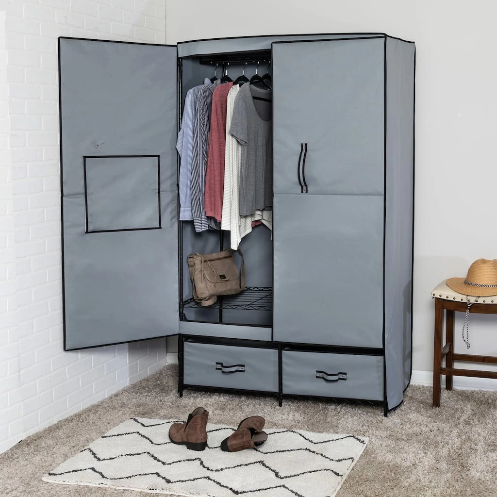 Those items you only touch twice a year don’t really need to stay in your closet, do they? Imagine the closet capacity if you stashed away the party clothes and formal winter coats until you need them. Give those items another home with this sturdy clothes storage wardrobe. This free standing closet has a 43-inch garment rod to hold all of your closet overflow, and the breathable fabric cover will keep your favorite items from getting musty or dusty. Two convenient bottom drawers provide additional storage for shoes, boots, belts and other clothing accessories.