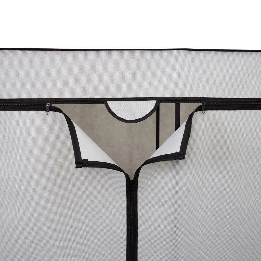 Some storage solutions nip around the edges of an issue of organization. Not this portable wardrobe closet. With five-feet of clothes racks for hanging garments, it can solve a problem of diminished closet capacity in one fell swoop. Whether a wardrobe is expanding, a family is growing, or sentimental clothing is proving un-purgeable, this extra large freestanding closet adds the storage the situation requires. And since a heavyweight non-woven poly cover drapes over the dual racks, you can move the entire unit to a basement or garage, knowing clothes will stay dust- and dirt-free. When it’s time to find those surplus clothes, a clever T-zipper swiftly opens up the covered wardrobe to spot what you need.