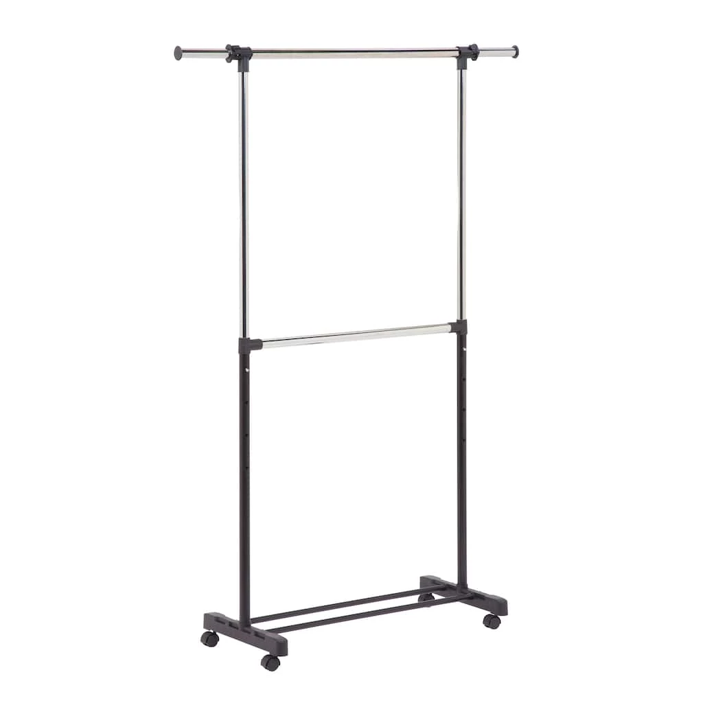 This clothes rack is adjustable in more ways than just sizing its rods up and down. Granted, that’s a handy feature. But we mostly appreciate how this portable clothes rack can adjust to many circumstances. With its locking caster wheels, we move this into the bedroom the night before a presentation to try out outfits. On laundry day, it’s rolled onto the patio for delicates to air-dry. When we’re entertaining, this double clothes rack is at the entryway for guests to hang their coats. And those are just a few of our faves. How will this garment rack adjust for you?