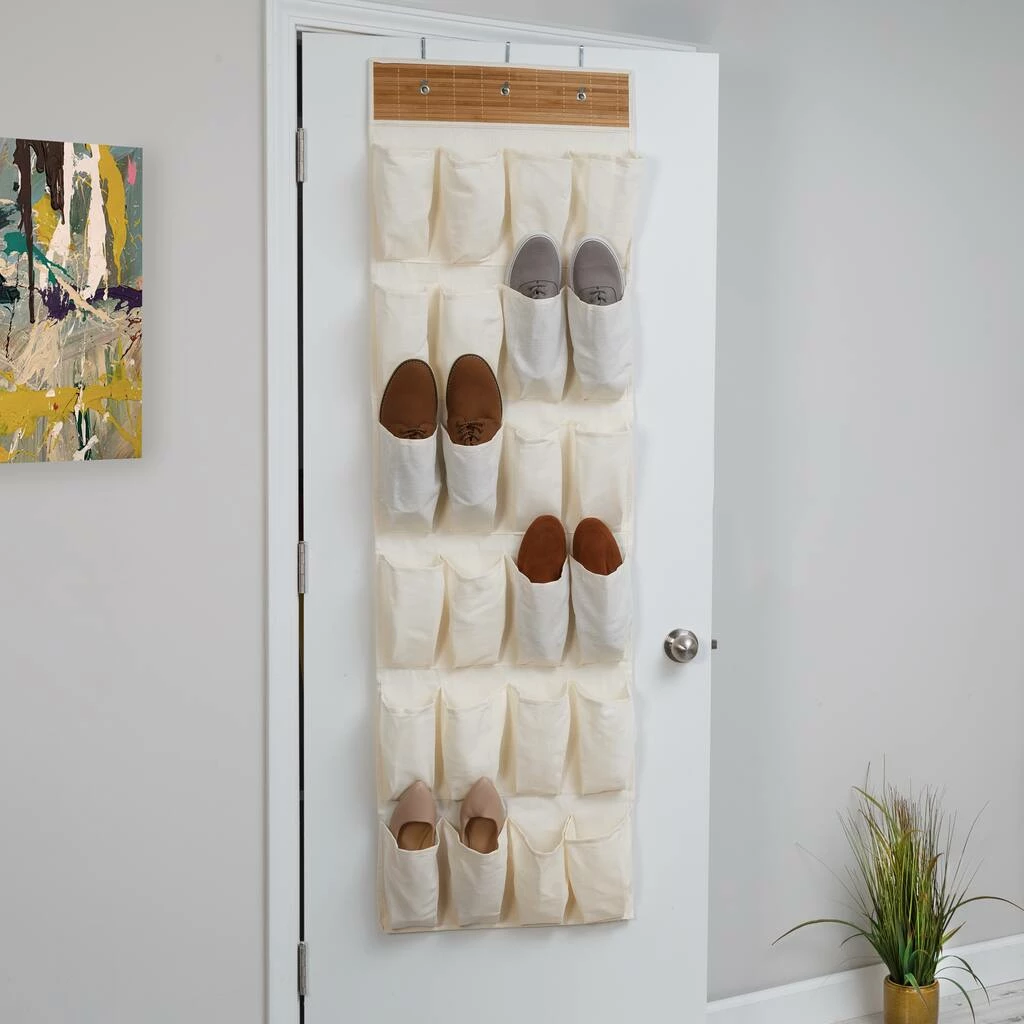 With this over-the-door shoe rack, 12 pairs of sandals, sneakers, and heels can be hung behind a bedroom door to be kept close to coordinating clothes, the good mirror, and that flattering bedroom lighting. Three sturdy hooks secure over most door frames, so this organizer can go where you need it. If you’ve solved shoe storage, instead fill its durable canvas pockets with scarves, belts, small handbags, or other accessories. Or move it into a home office and fashion a craft station to house markers, yarn, and beads; or even set it up in a kid’s bedroom to toss in toys.