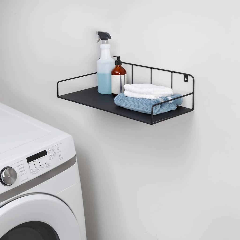 Multi-purpose, strong, curvaceous, and bold, this metal floating shelf showcases an exquisite mix of function and beauty. Designed to be both a wall mounted or an over the door shelf, the options for where you put this black stunner are endless. The sturdy all-metal build is perfect for organizing the laundry room, boosting kitchen storage, or adding display space to any room. Plus, it looks utterly fabulous while doing it! The soft curves contrasted by sleek lines combine for a design that is as wow-worthy as it is versatile. The curved side bars are a particularly wonderful feature that ensures items like books and beauty products don’t tip off the edge. Easy to hang and made to last, this is the black floating shelf that your dΓ©cor has been craving!