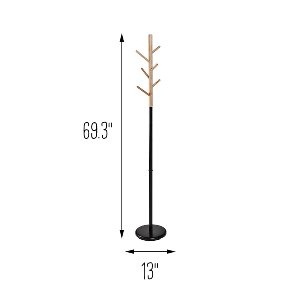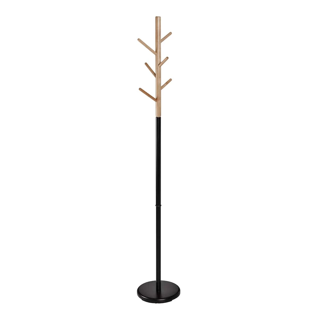 This modern coat tree stand inspired by the minimal aesthetic of Nordic dΓ©cor is as practical as it is stylish. Its sleek silhouette, round base, and bold black metal finish contrasted by a natural wood will elevate traditional and modern entrances alike. And the best part is, you don’t have to trade style for function. With 6 peg hooks, a cap, and a weight capacity of 20 lb., you and your guests will have plenty of room to store your outerwear. This tall and narrow storage option can easily tuck into any corner of a mudroom, entryway, office, or anywhere else that can use a boost of coat storage. Although, we understand that it can be hard to tuck away something so chic!