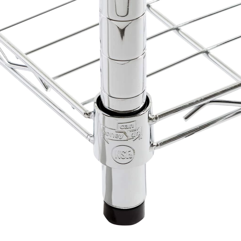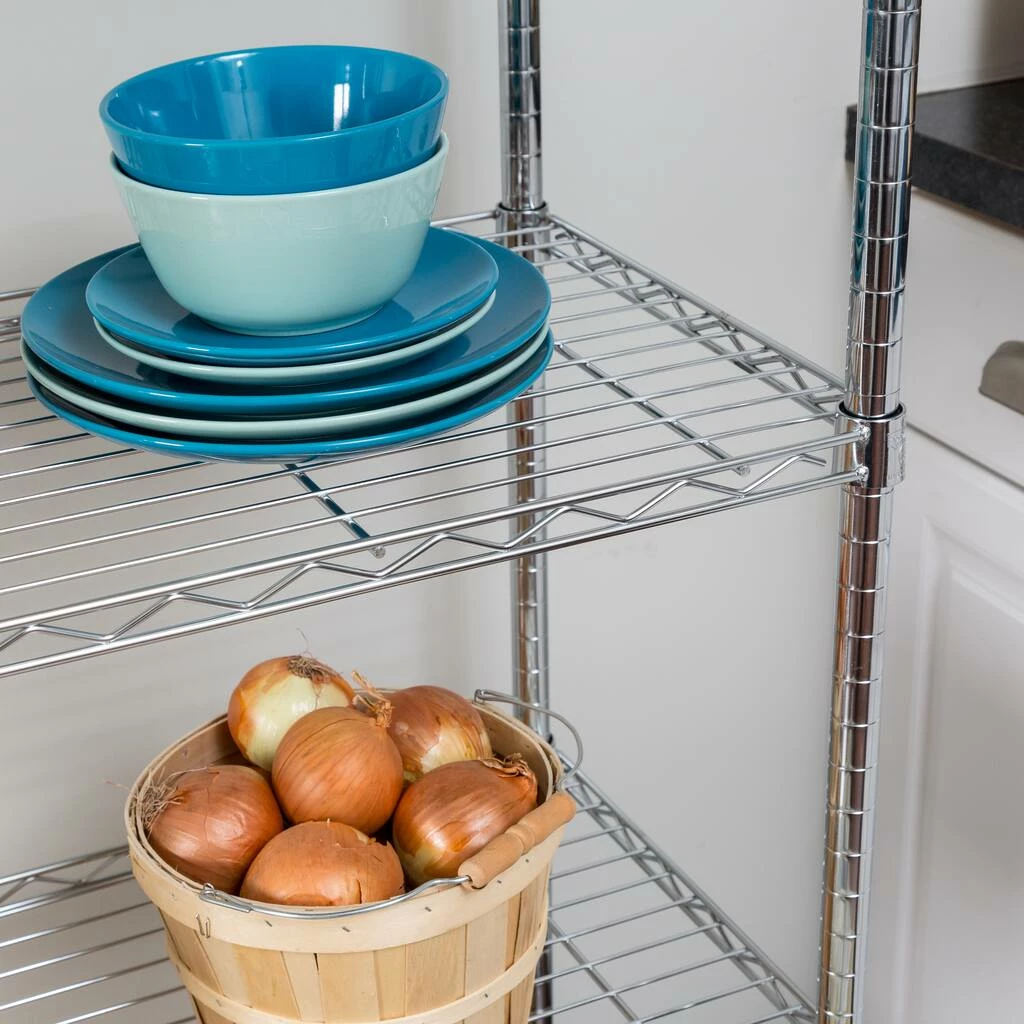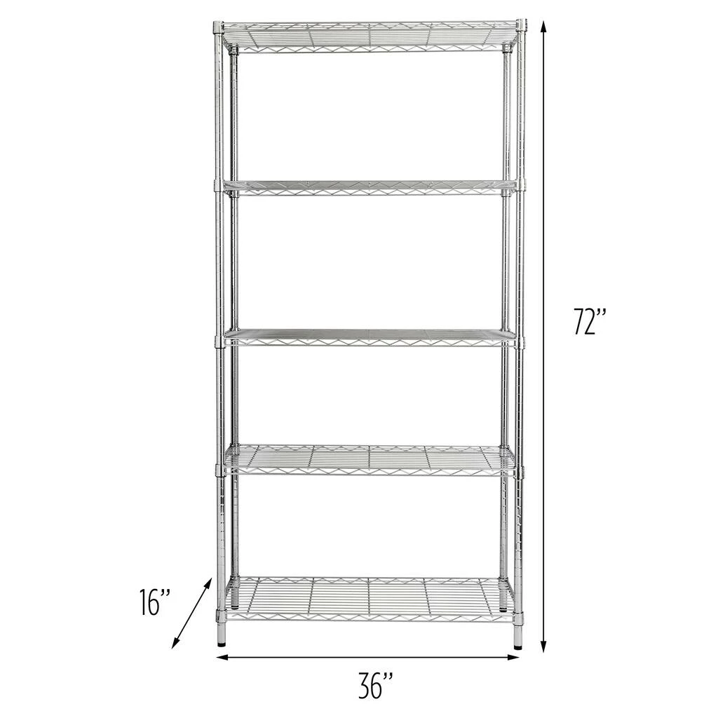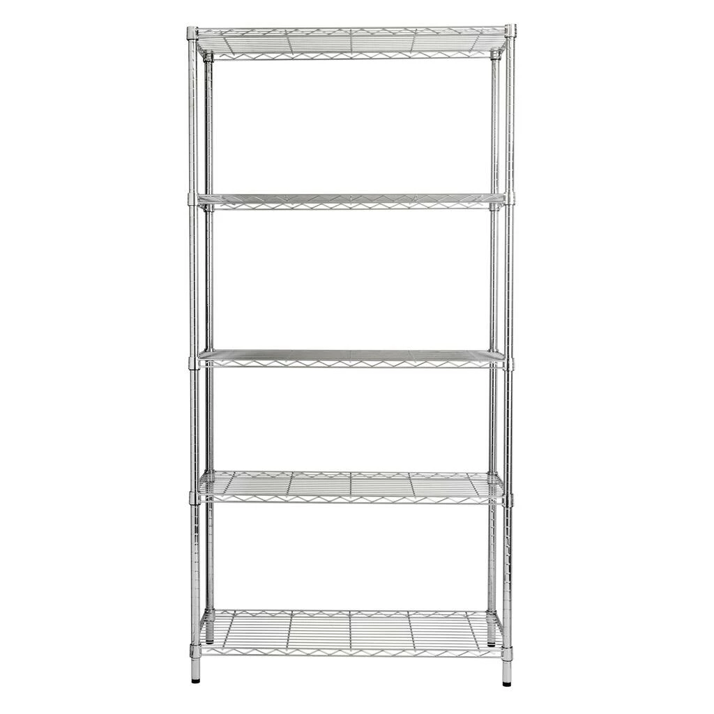 You are looking for a shelving unit that is versatile β that could serve as garage shelving or kitchen shelves. You need adjustable shelves for when your storage needs change or that oh-so-random item comes home and doesn’t fit on the shelves as-is. Well, your shelving ideas are just a click away. This 5-Tier Adjustable Chrome Storage Shelf is all that and more, with the ability to hold up to 350 pounds on each shelf and a steel frame construction that gives it industrial quality, making it the perfect kitchen, garage or closet shelving unit. And if you want to move it around, you can purchase wheels that will give you the portability you need, with the functionality and style you desire.