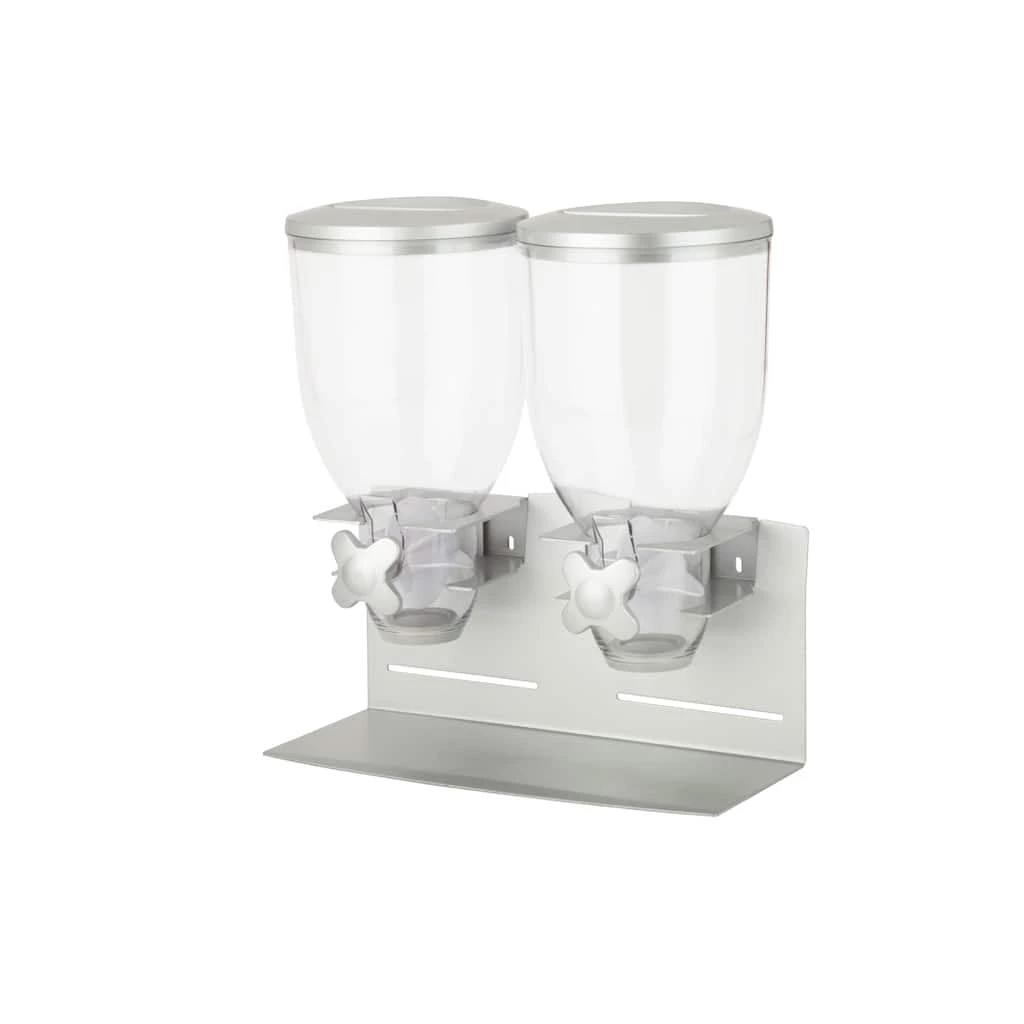 Suitable for dry foods such as cereal, oatmeal, candy, granola, nuts and more, this convenient storage and portion control solution dispenses approximately one ounce with each twist. Each canister holds 17.5 ounces of dry food. Designed to preserve freshness for up to 45 days, this unit is perfect for the health and weight-conscious and for controlling stacking. May also be wall mounted.