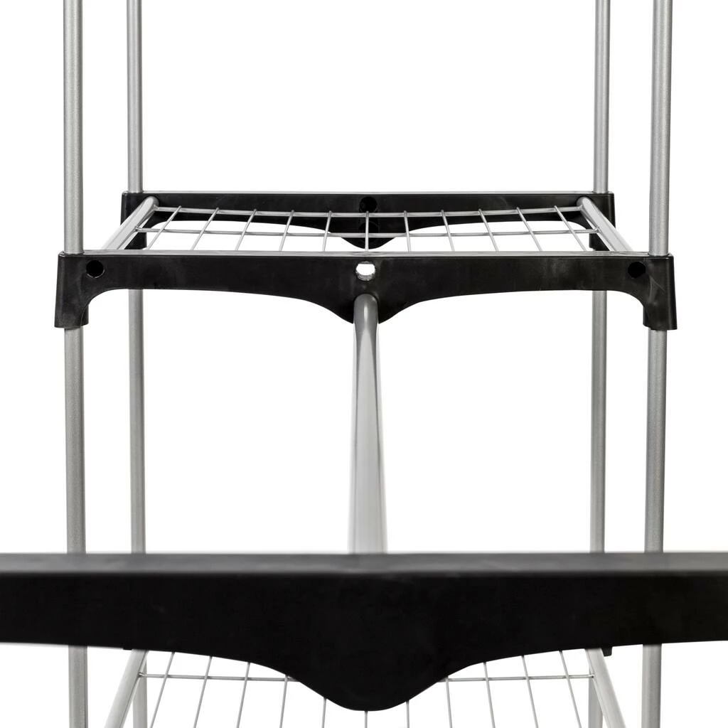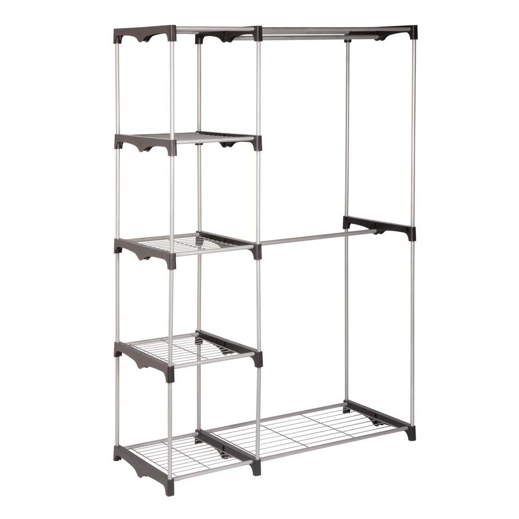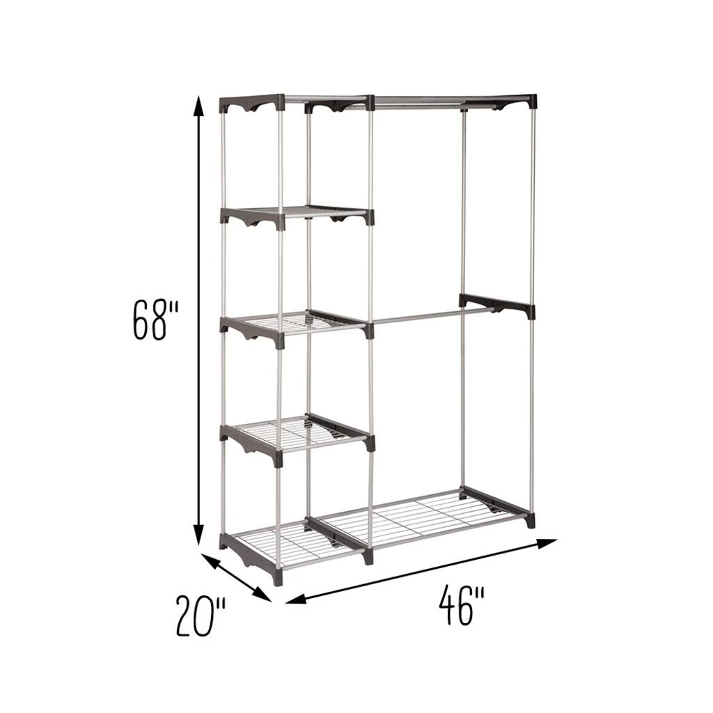 Whether youβre out of space to store your clothes or you need a portable closet, this freestanding organizer keeps clothes clothes and shoes in check with 4-tiers of stacking shelves as well as two garment rods for hanging clothes. Steel plastic construction provides durability for years of use, and setup is easy with no power tools required for assembly.