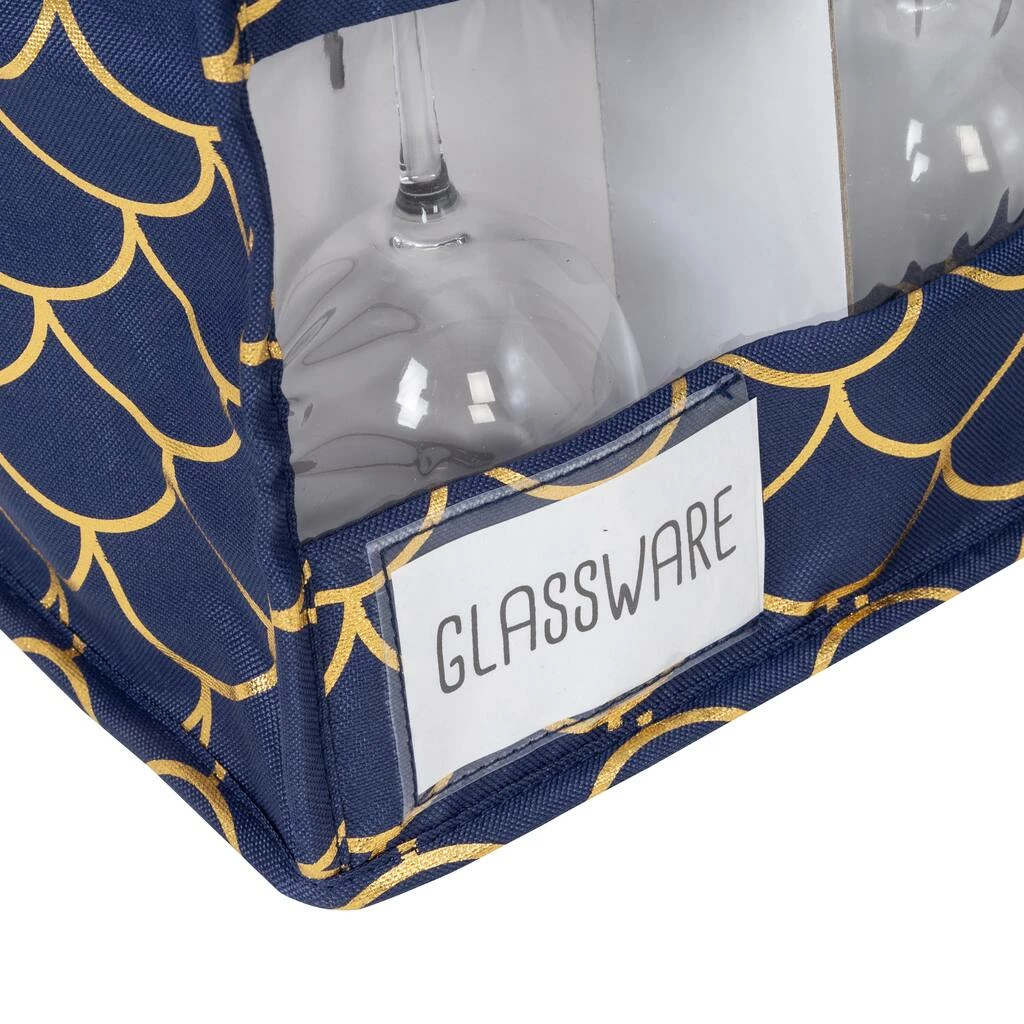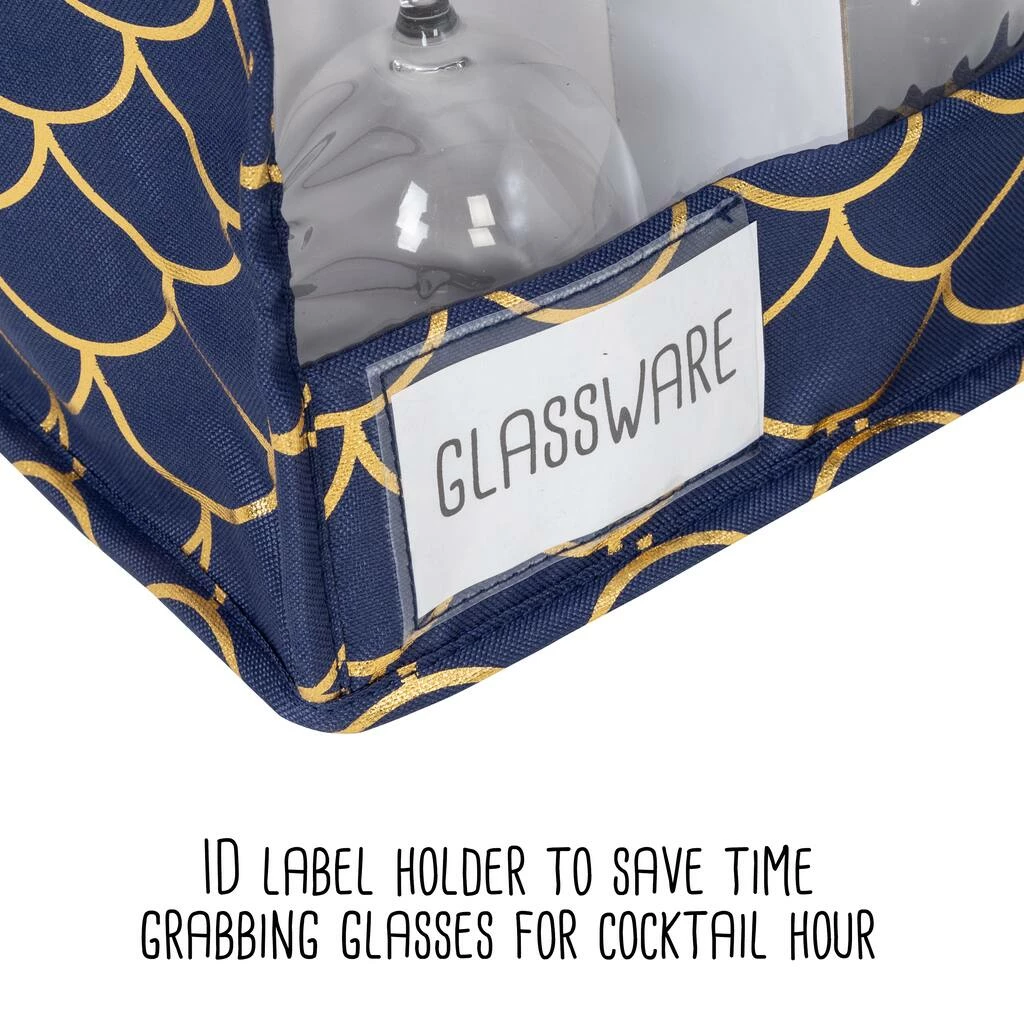 - Safely stores stemware like wine, champagne, martini, and pilsner glasses