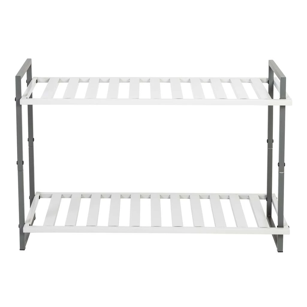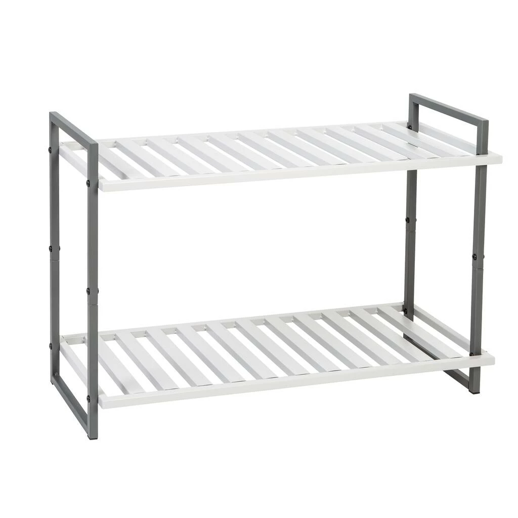 It’s hard for a home to feel like a sanctuary when shoes strewn across a foyer are the first thing to greet you at the door. Tidy up a shoe pile and splash a dash of style into an entryway with this modern metal shoe rack. Two shelves make a home for up to six pairs of shoes, handbags, umbrellas, or whatever else you need to grab-and-go when heading out the door. The slatted shelf design promotes circulation, so drippy rainboots and soggy sneakers can gently air dry. And the square tube design, finished with sophisticated light and dark gray tones, lends a fresh modern edge to the classic steel frame construction.