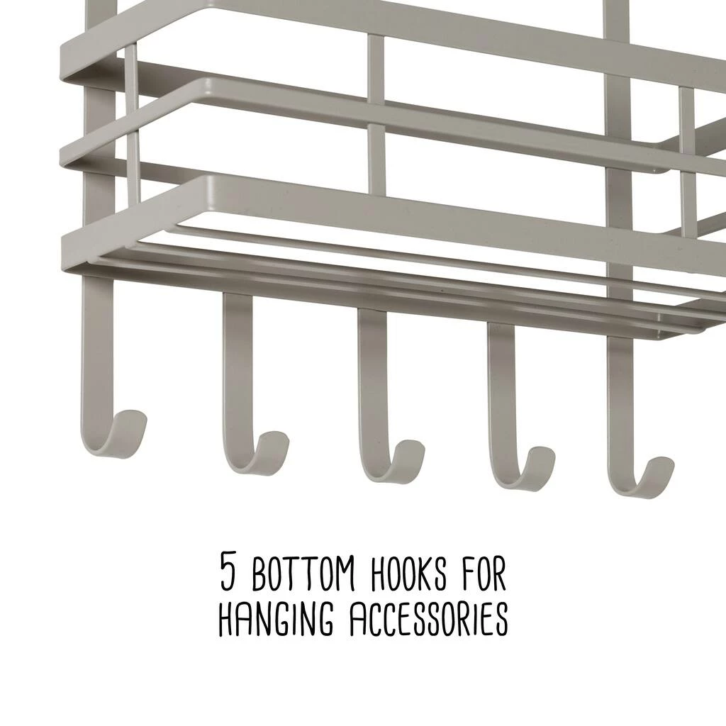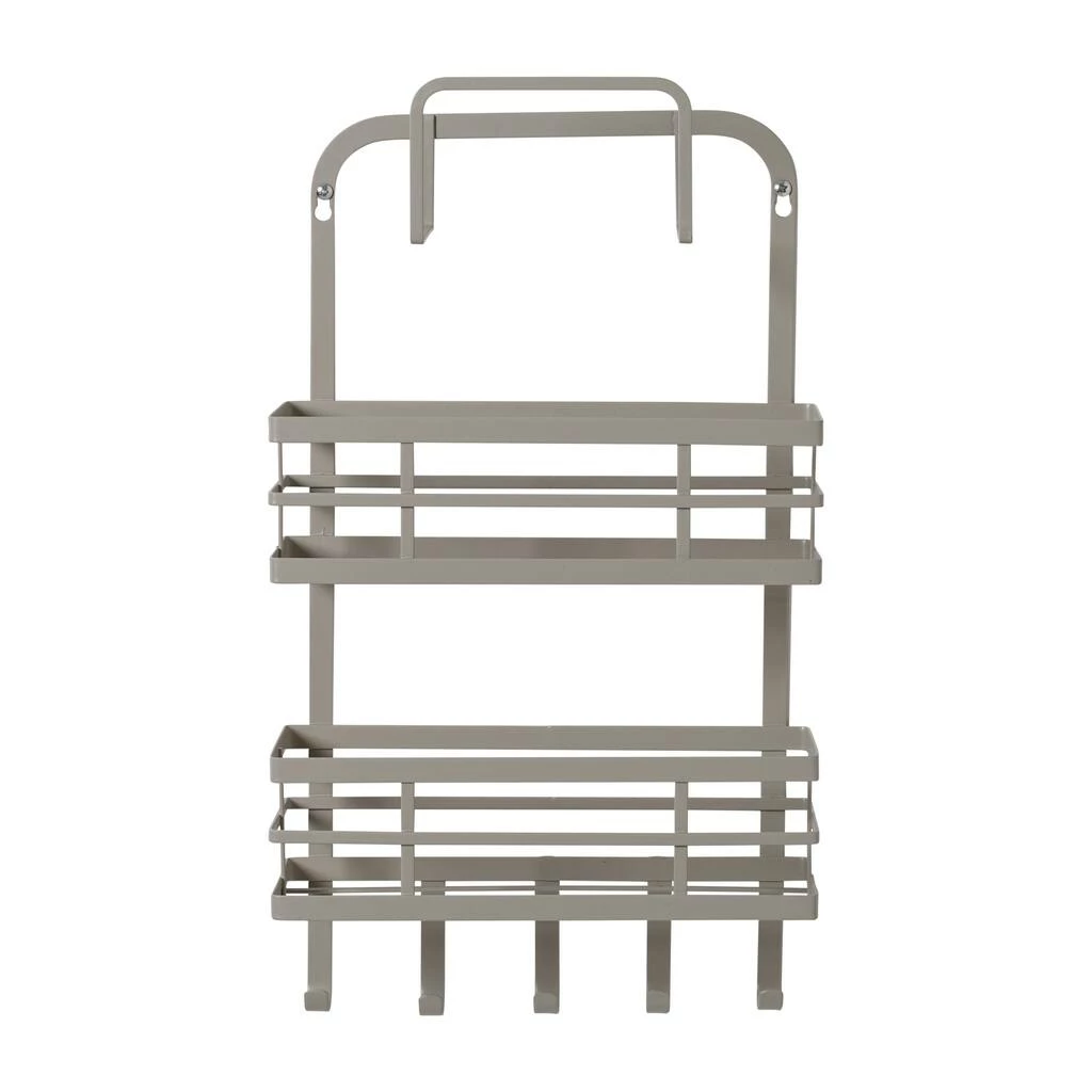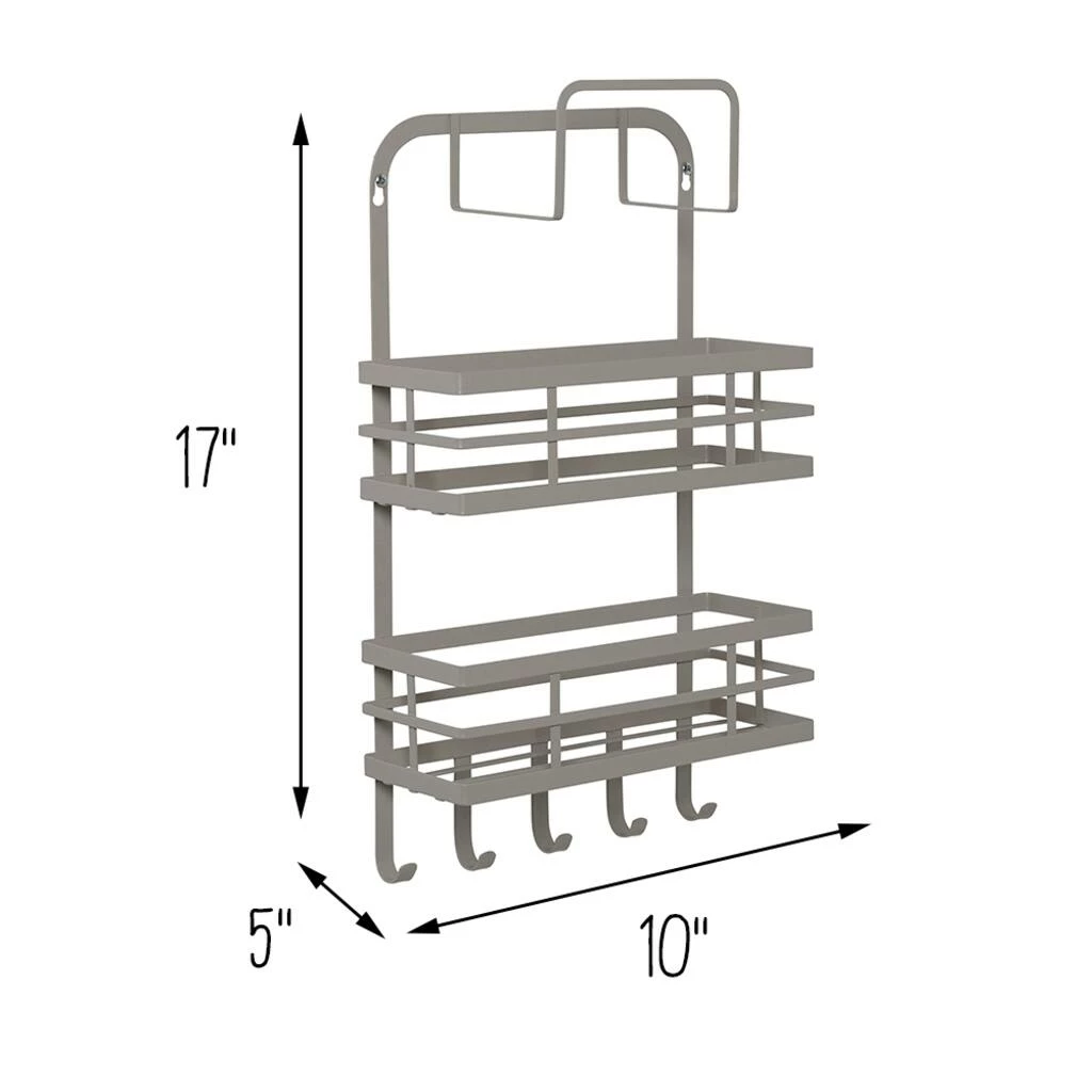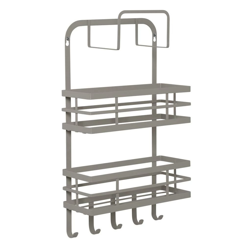 This small and mighty kitchen wall storage solution will have you hooked with its modern form and versatility as soon as it enters your home! With 3 shelves, 5 hooks, and the option to mount it to the wall or hang it on a cabinet door, it is brimming with possibilities. Use the unique hooks to create hidden cabinet door storage for items like essential oils and medication. Or utilize unused wall space in your kitchen and put this sleek space-saver on display to keep scissors, baggies, condiments, and other essentials handy — without eating up drawer or counter space. Want to spice up your kitchen and your cooking? This gray shelf organizer also makes for a stylish wall-mounted spice rack!