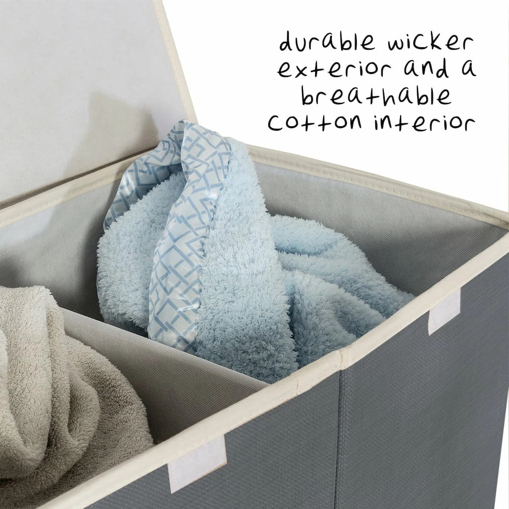 Make laundry day more efficient by pre-sorting your dirty laundry with this 2-compartment clothes hamper. Lights in one side and darks in the other let you grab and get started quickly. Handles allow you to move it easily around the room and it folds completely flat when it’s not in use. A tight hook and loop lid allows you to literally keep a lid on overflowing laundry, but it wonβt keep a lid on the excitement youβll have when laundry day is over.