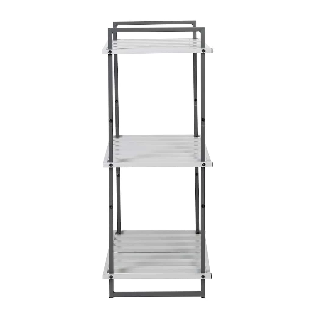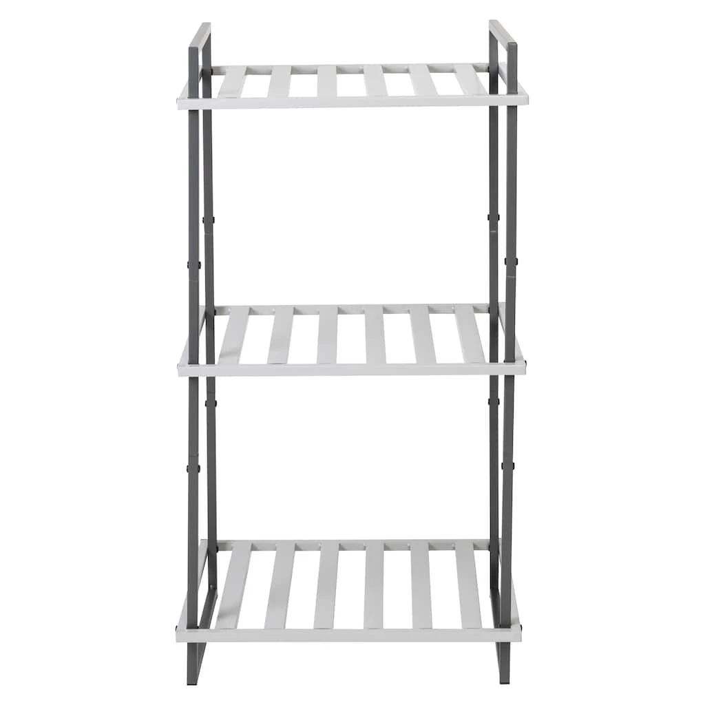 Stylish and practical for home storage, this 3-tier metal shelf can store dΓ©cor, personal items and more in your home. With 3 slatted metals shelves, what you see is what you get. And for this shelf, what you see is a contemporary metal tube design finished with cool contrasting gray tones. Itβs a piece thatβs subtle, yet hard to miss.
