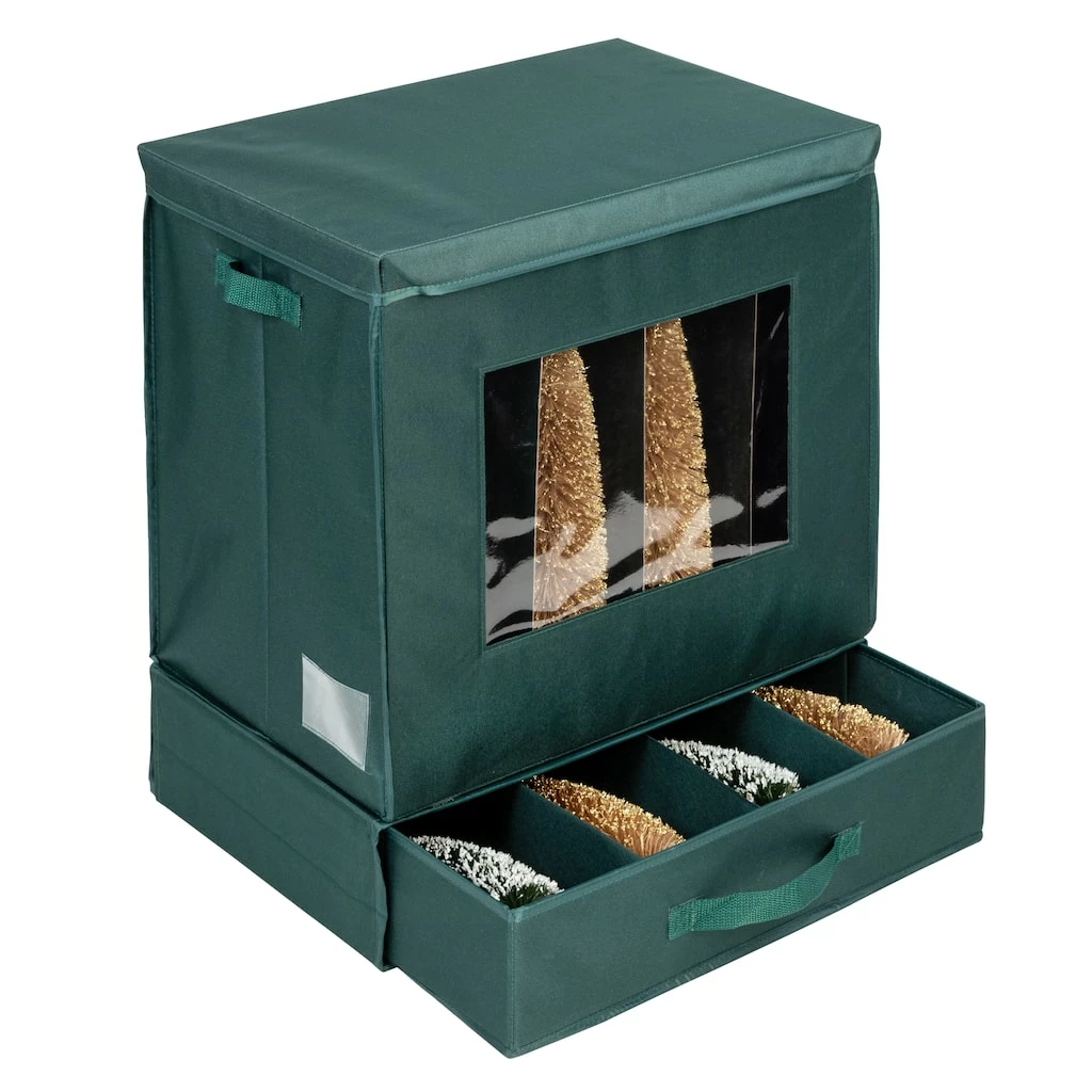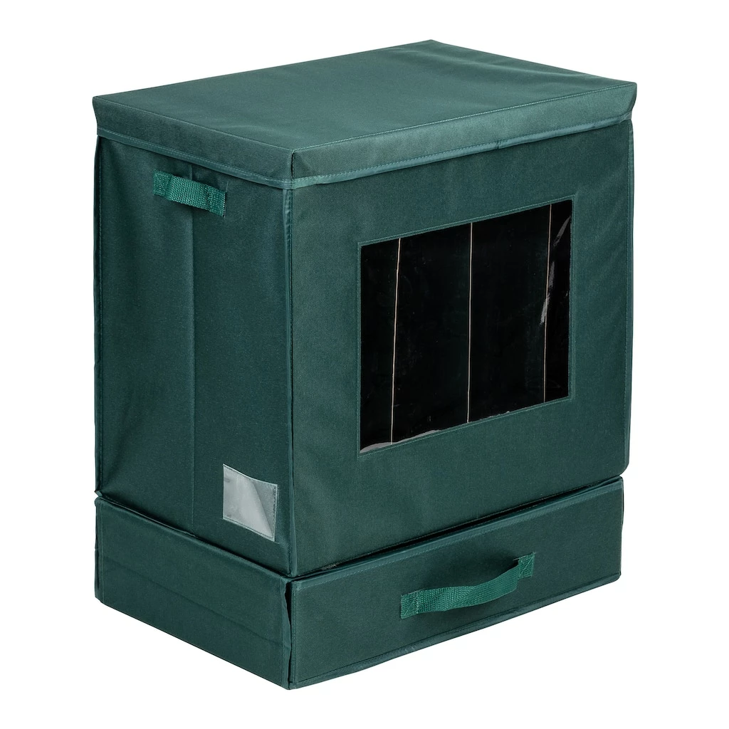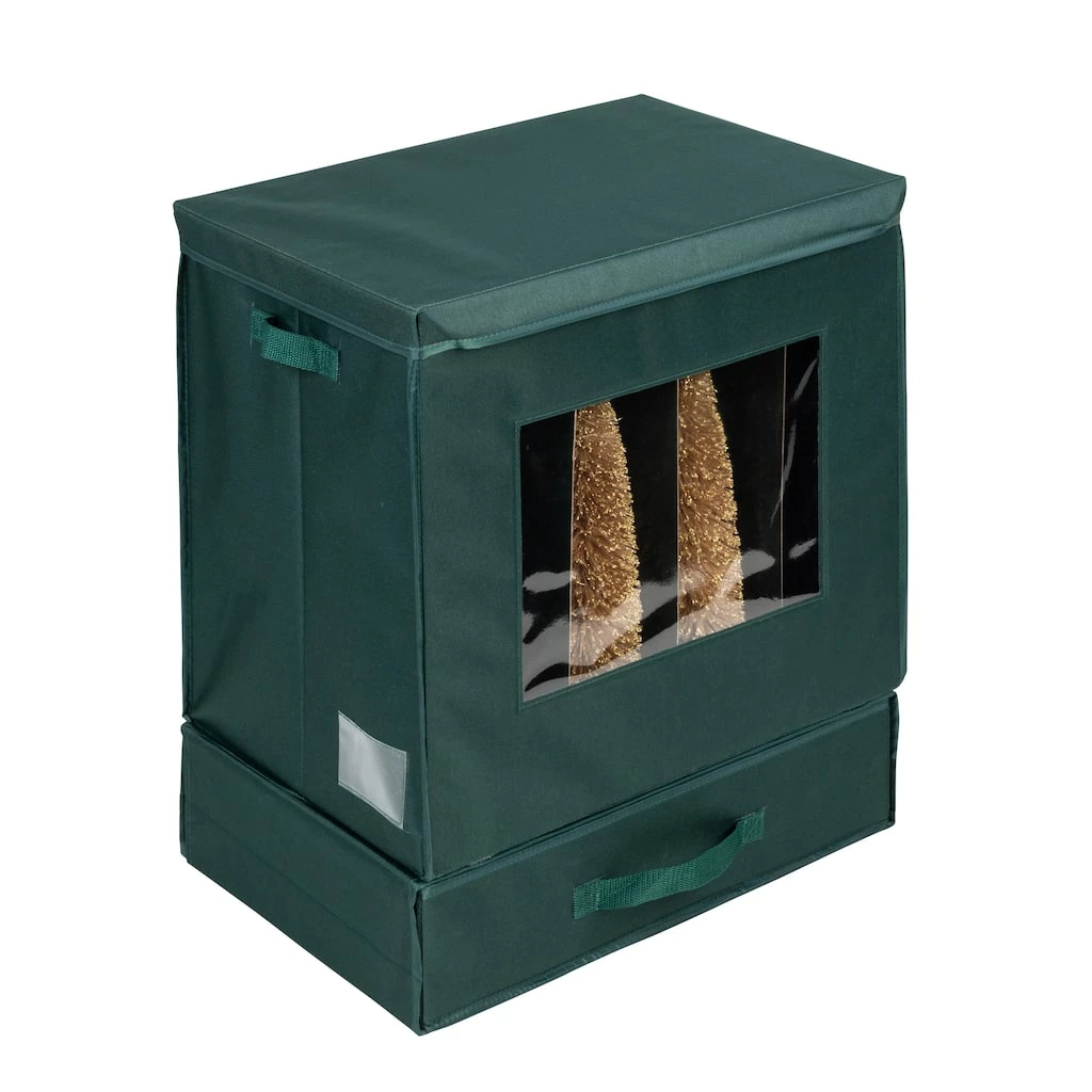 Your mom used to wrap her Nutcrackers and Santa figures in newspaper before tucking them into an old boot box. Convenient and cheap, sure, but that storage system probably didn’t last for very long. This sturdy Christmas storage box has 12 compartments for neat storage of elf statues, holiday train sets, or Christmas village. Inside the box itself are 8 larger compartments, while the drawer underneath has 4 for smaller, flatter items. The dividers between these compartments are moveable, creating a customizable storage space for your dΓ©cor pieces. The included satin storage bags protect delicate surfaces, and a clear-view lid gives you a quick peek at what’s inside.