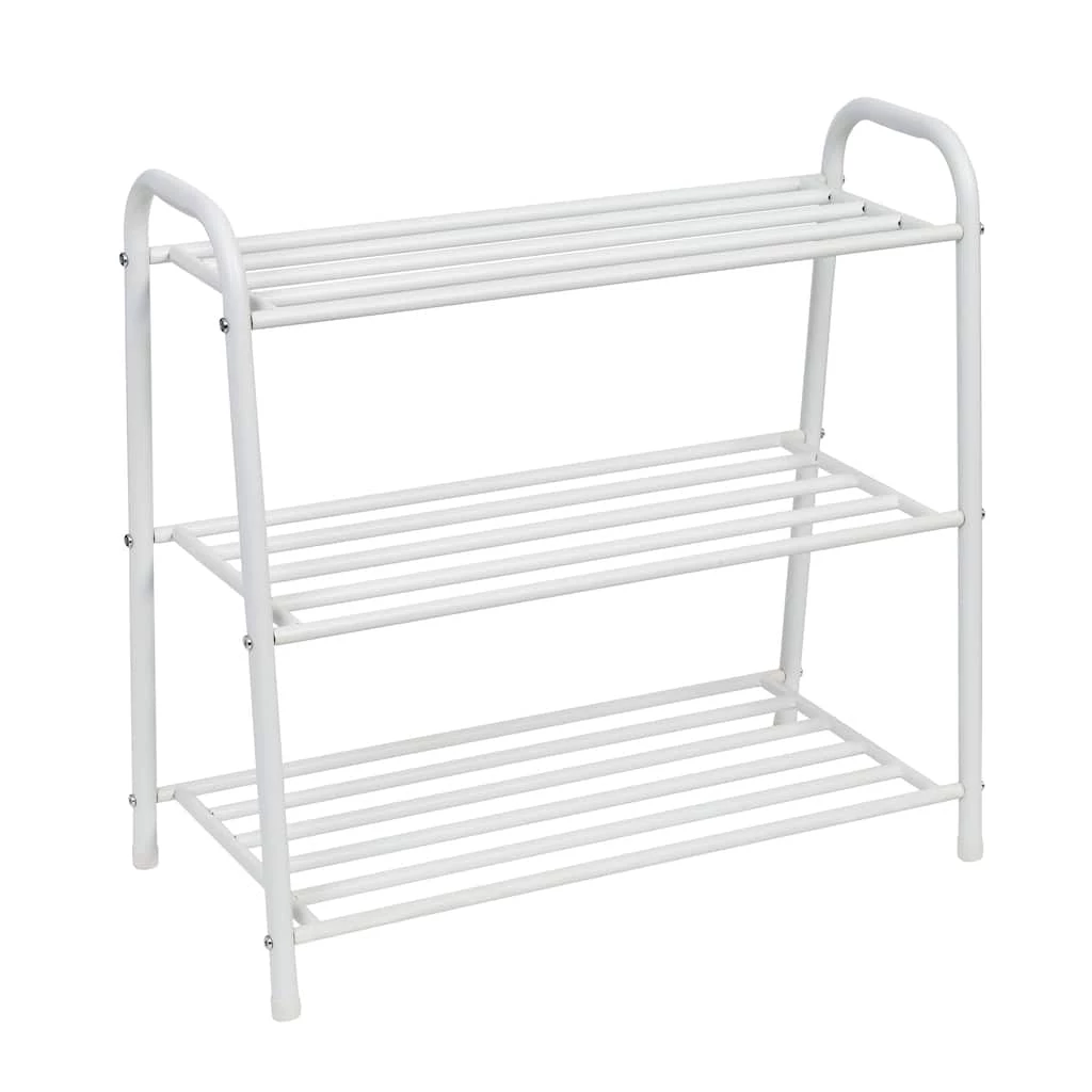 Store shoes stylishly and simply with this matte white metal shoe rack. Its three tiers will make a tidy home for the sneakers, sandals, and boots that make your home run. When that footwear finds a mud patch or tramps through an epic work of sidewalk chalk art, itβs simple to wipe down and clean the smooth matte finish that coats the rack’s steel frame. And speaking of that subtle finish and A-frame, it’s not bad to look at either. Leave it at a doorway and youβll erase a messy pile of shoes while lending an entryway a light touch of countryside chic.