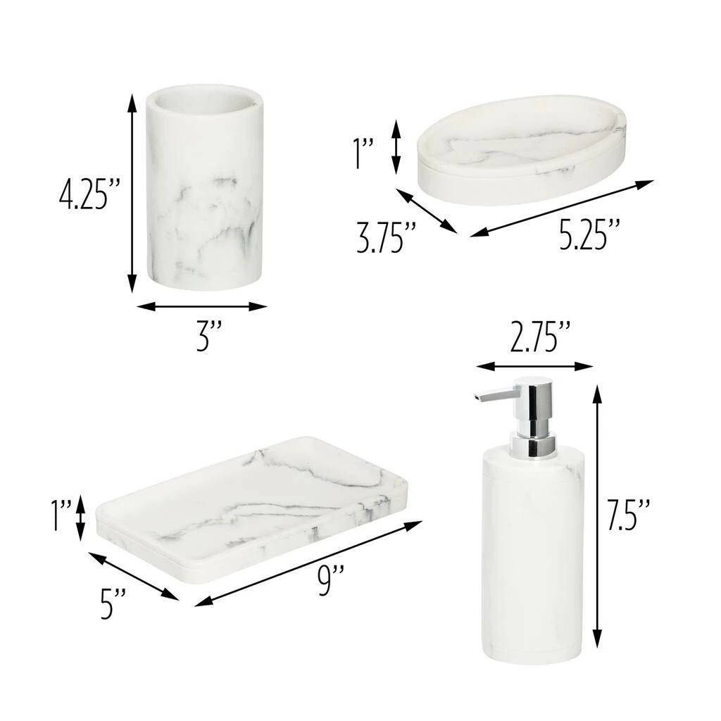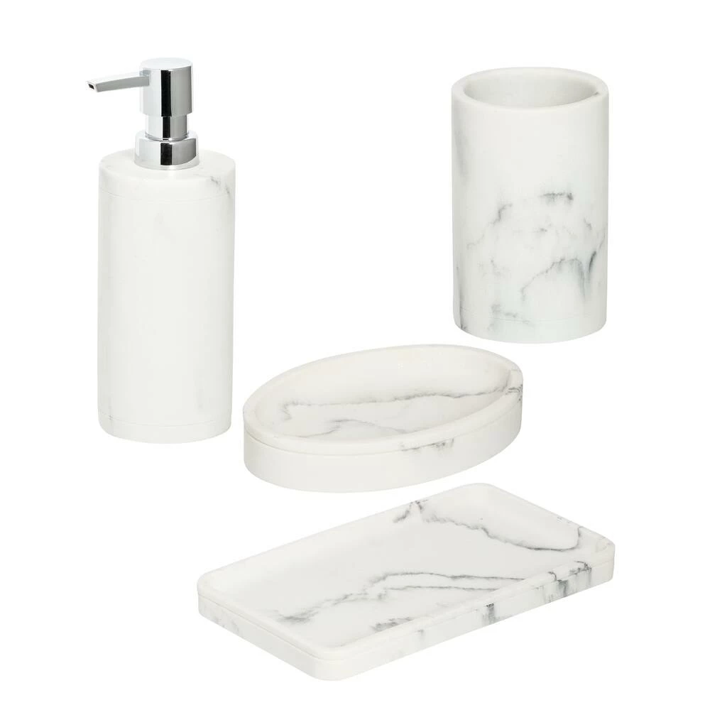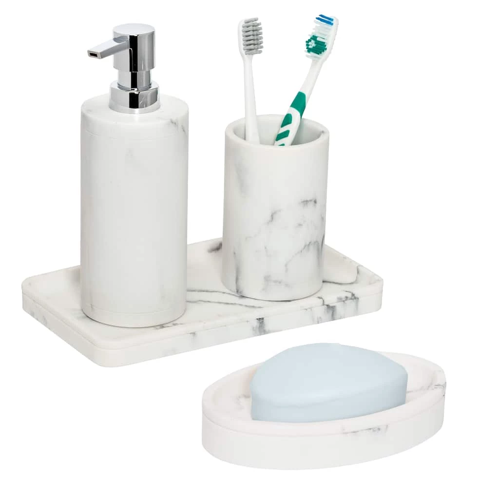 This bathroom accessories set makes for the ideal one-stop-shop with toothbrush holder, soap dispenser, tray and soap dish. It brings a modern design element to your bathroom, while its durable material stands up to everyday use.