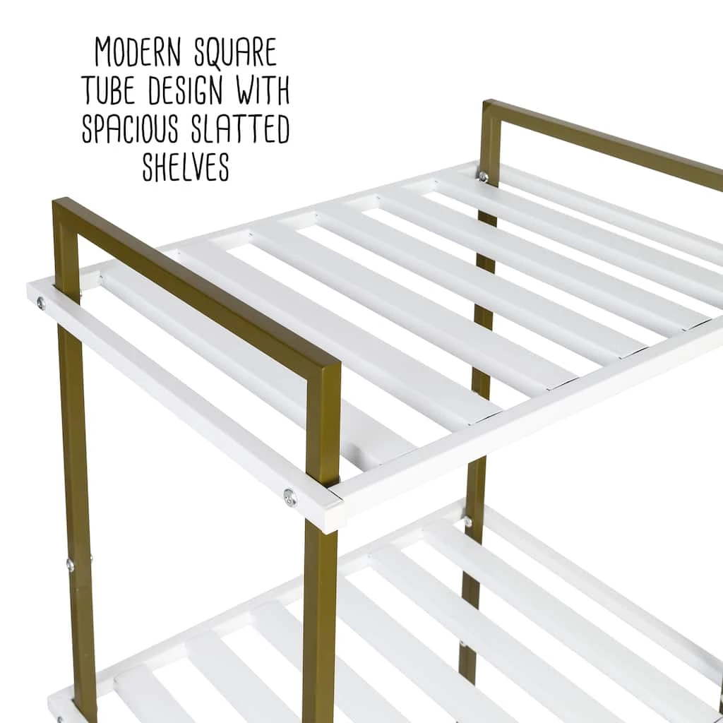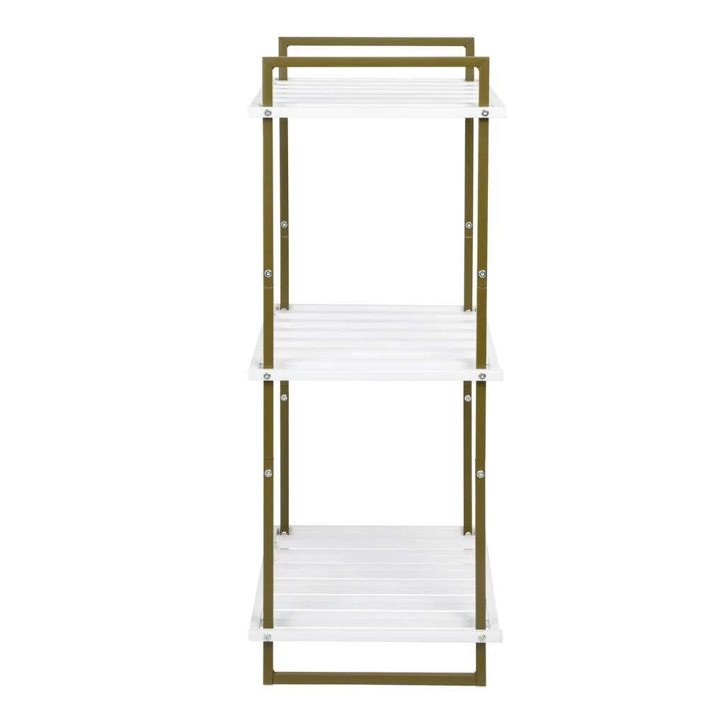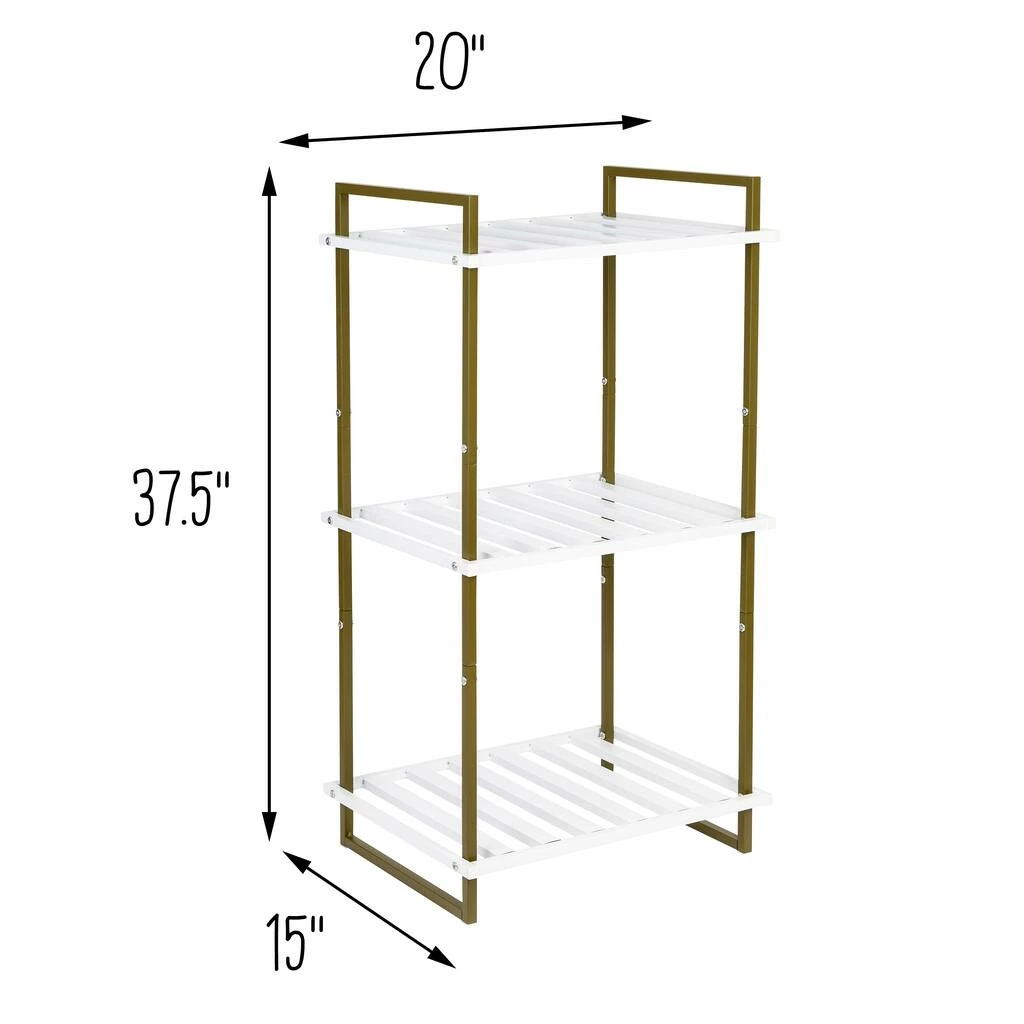 Where a bathroom is light on built-in storage, this shelf shines. With 3 tiers, itβs ideal for holding bins of cleansers, baskets of lotions, or rolls of fresh hand towels. Even if cabinets and closets abound, this metal shelf is handy to have around. It can help soften a spaceβs look and feel with the addition of a cozy candle, fleshy succulent, or another piece of personalized dΓ©cor. The slatted shelves keep air circulating, and the sturdy steel frame stands up to the typical wear and tear a bathroomβs heat and moisture can impose.