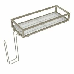 In small bathroom spaces, utilize this metal storage basket that fits on top of standard size toilet tanks and acts as over the toilet storage and an extra toilet paper holder. Its finish and angular design will have it fitting in seamlessly in your bathroom and will keep your reserves high.