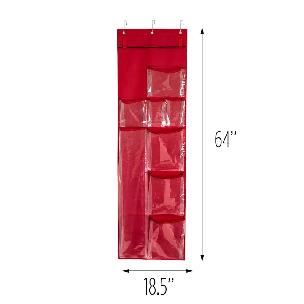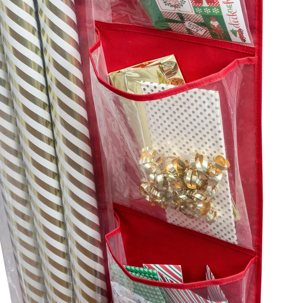 The artist in you comes alive when itβs time for wrapping gifts. You get help from this Over-The-Door Wrapping Paper Organizer, with its eight clear pockets for all your gift wrap storage needs. Your platinum taste of only-the-best ribbons and bows are also held neatly around a precisely placed dowel rod. And then, when the magic has faded ’til next year, simply close the door and put a bow on this holiday season.