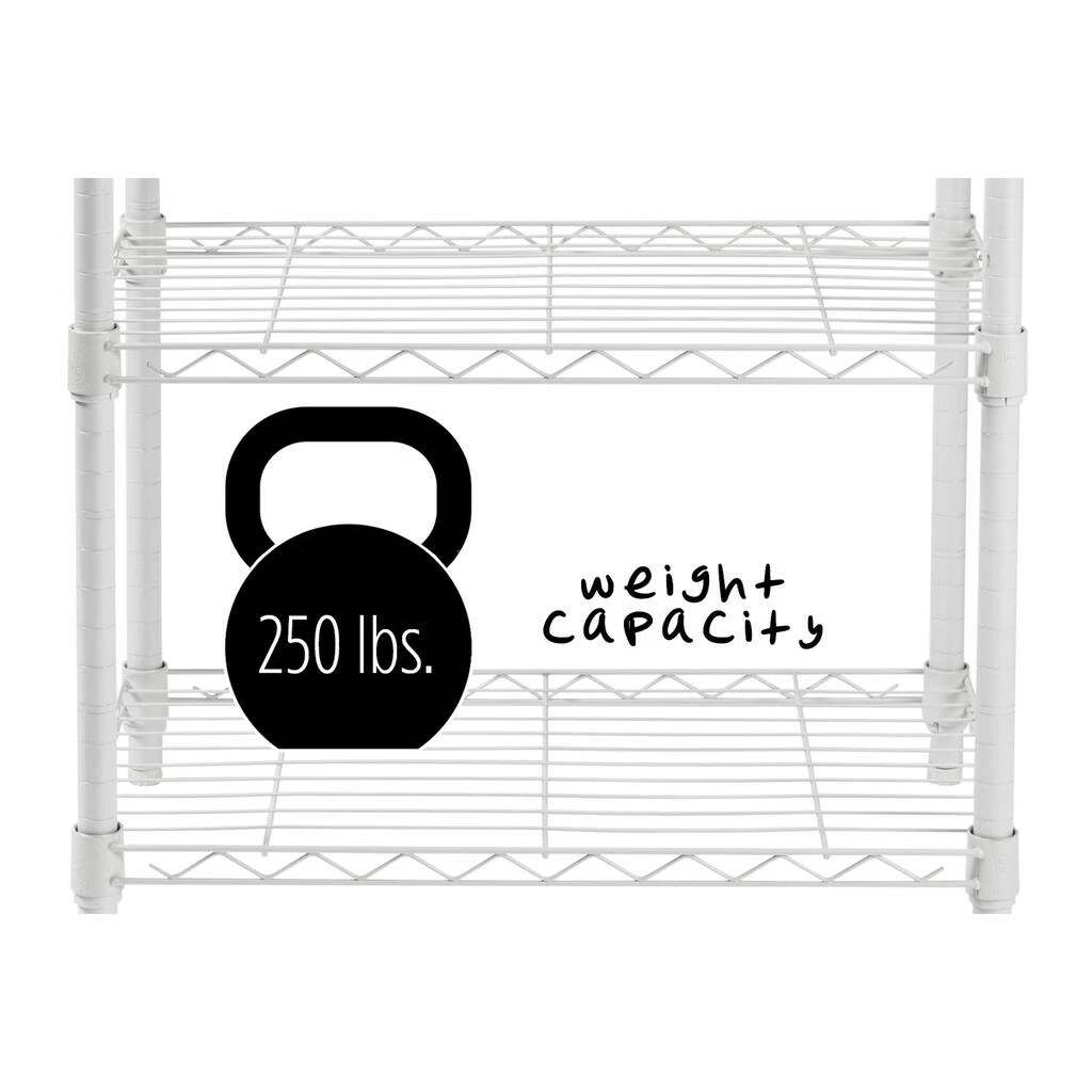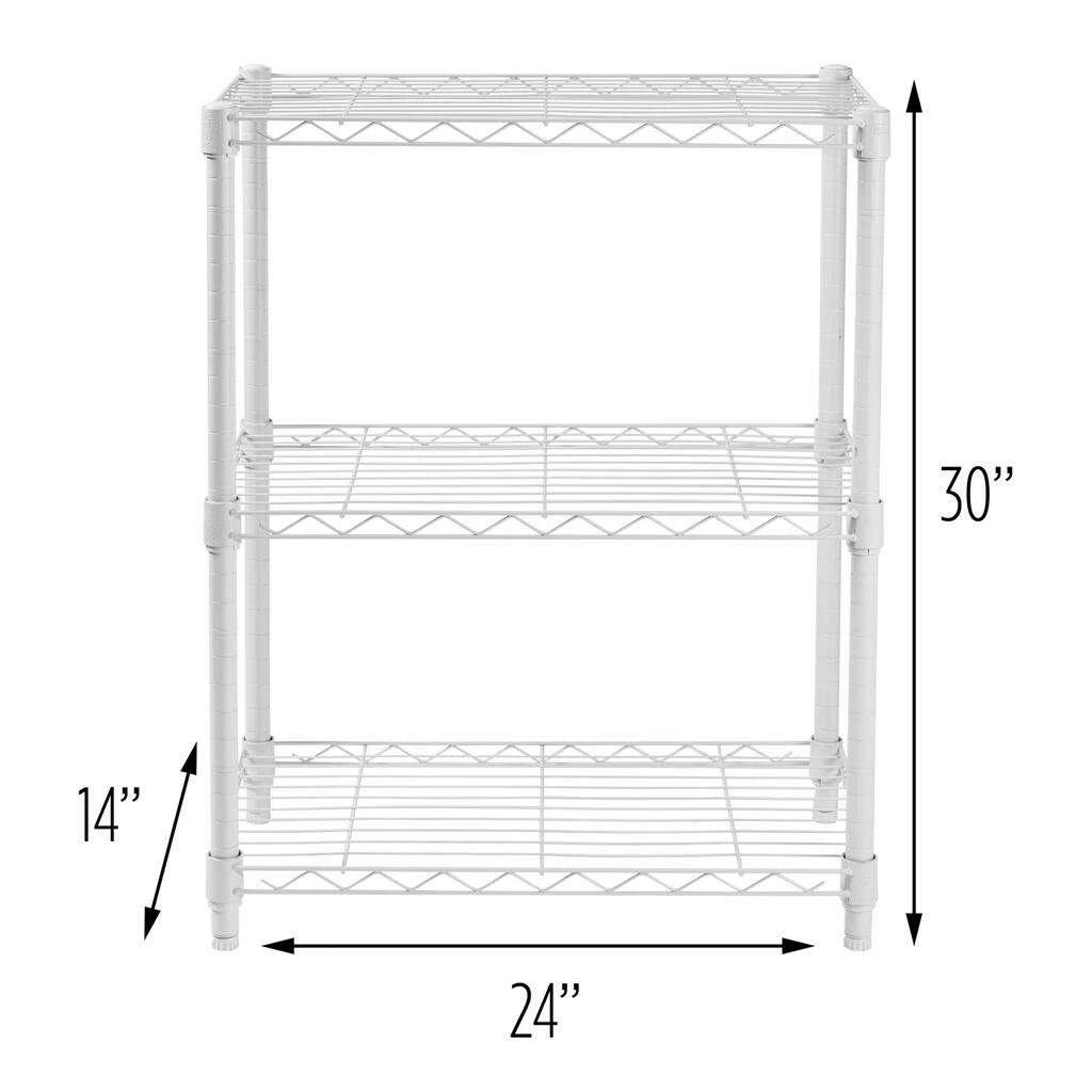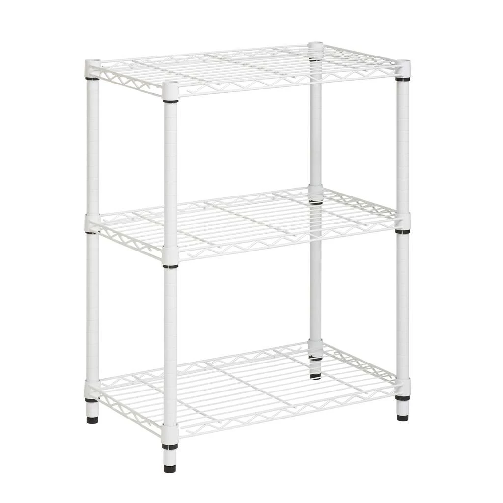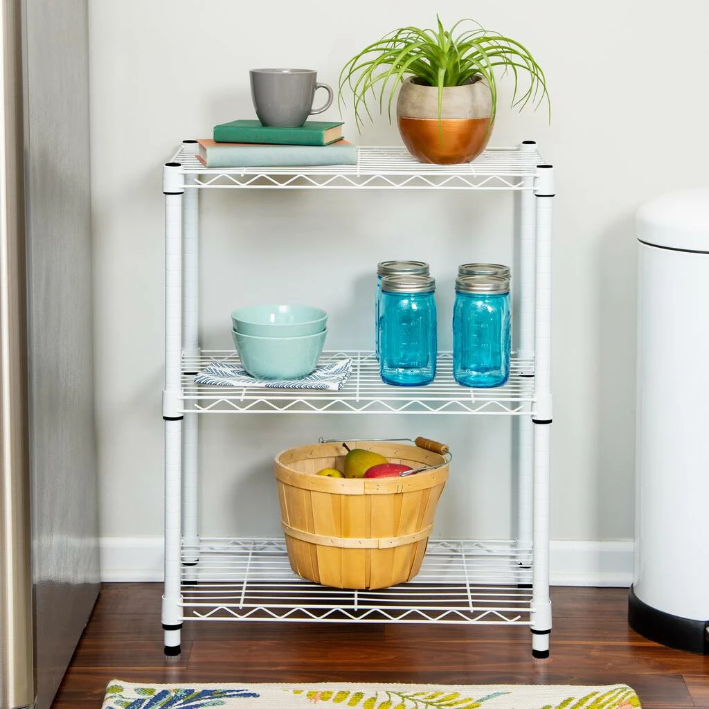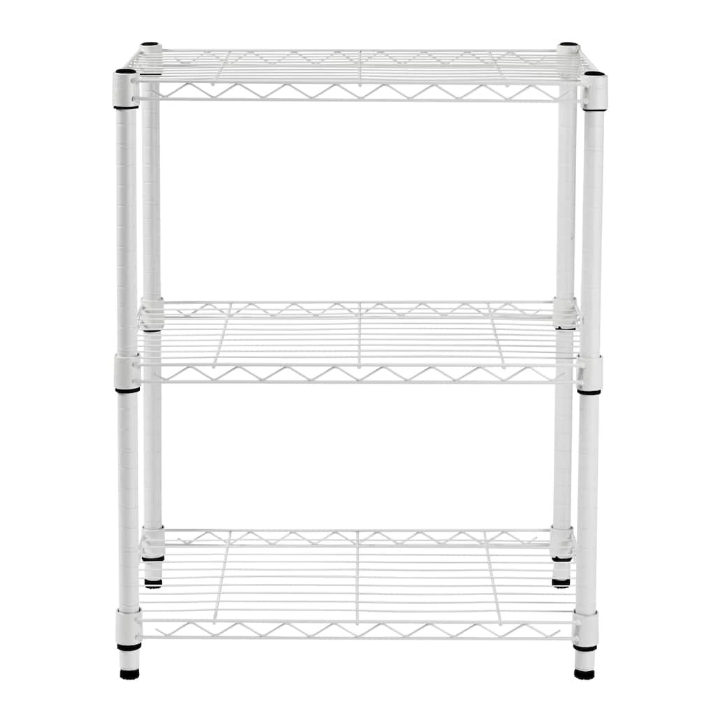 Restore order to your closet with this 3-tier heavy duty adjustable white shelving unit. Its commercial-grade durability is tough for any of your kitchen shelving needs, or to tame your wardrobe gone wild, while its steel grated shelves allow your garments plenty of breathing room. Easy to assemble and versatile, this adjustable shelving unit also straightens up messes in your basement or garage.
