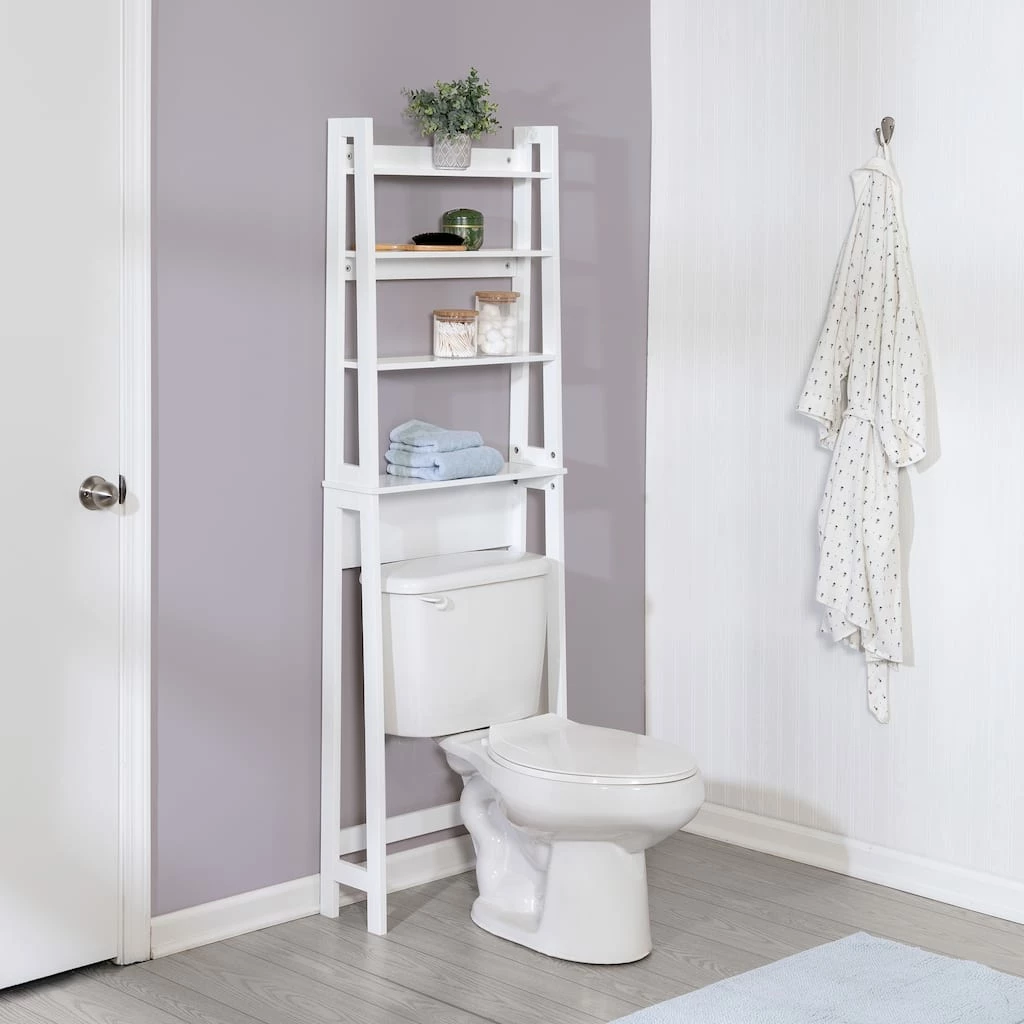 Bathrooms are often the smallest room in the home, but they require plenty of storage space. That’s where this over-the-toilet space saver comes in. This 4-tier shelving unit fits over most standard sized toilets and provides space to organize your bathroom essentials while keeping them within arms reach.