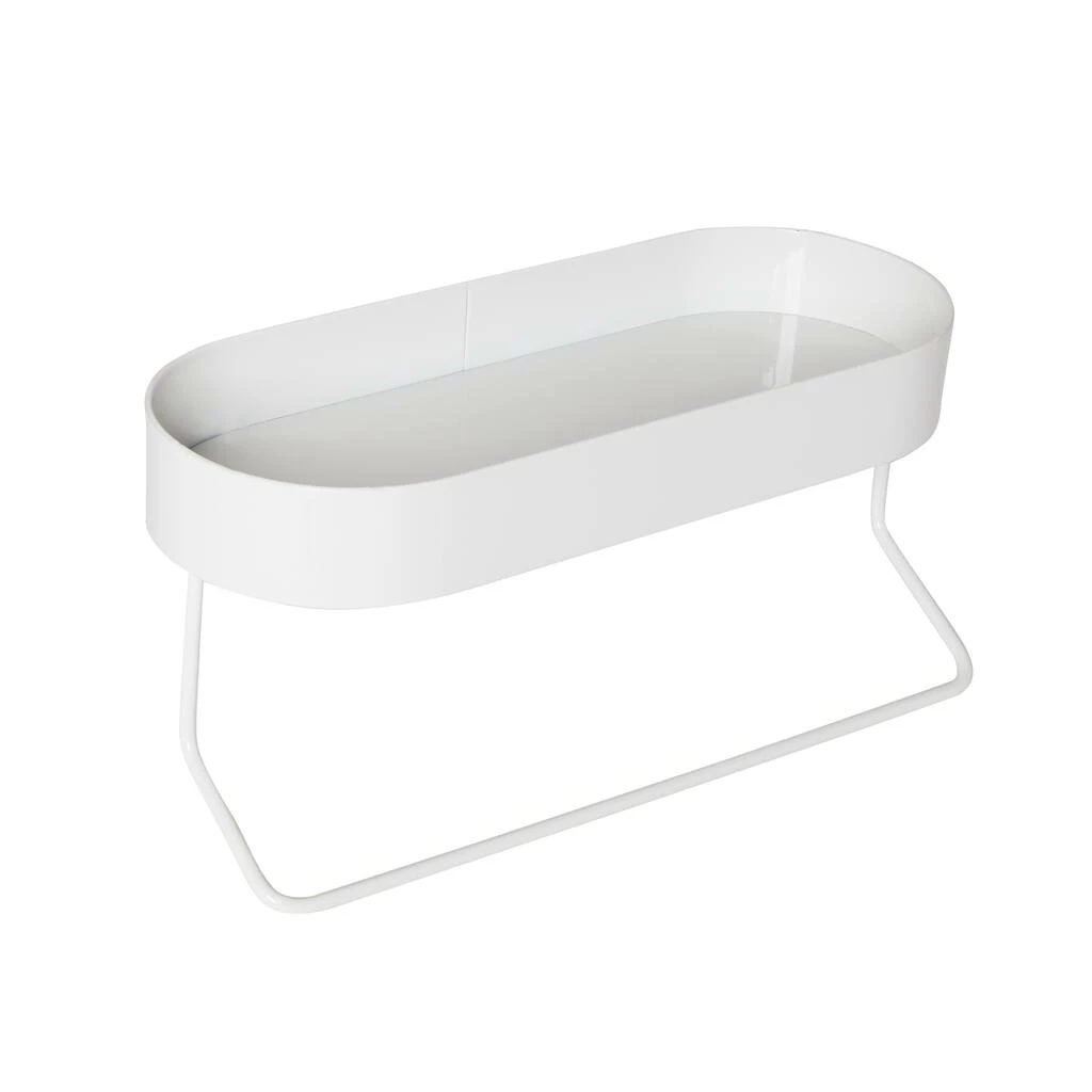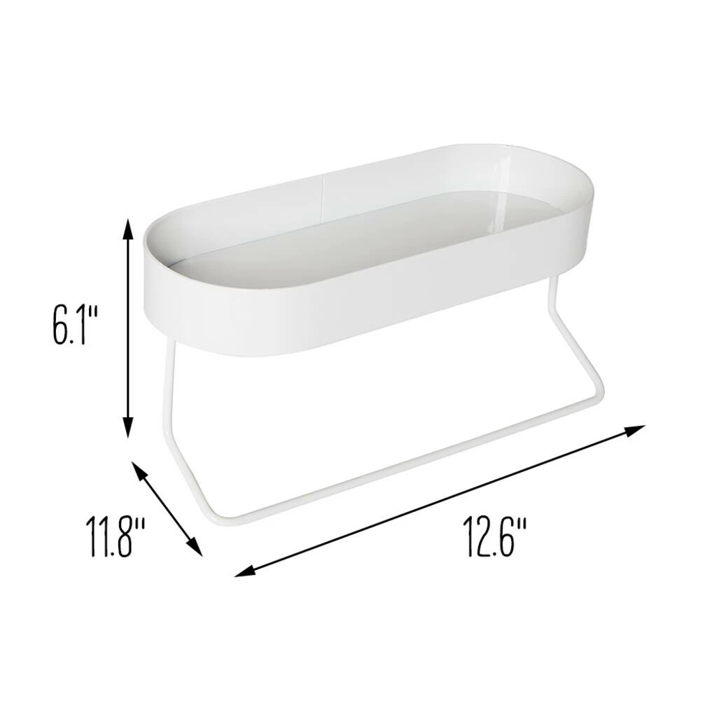 The soft oval shape and clean white finish allow this mountable bathroom shelf to blend into any style of home. Hang it by the sink and the bottom towel bar will keep hand towels within reach. Or mount it above your toilet and use the top shelf to stack a few extra toilet paper rolls, organize toiletries, or jazz up the space with some small art or a succulent. The good news is that no matter what you place on the top shelf, youβll be treated to peace of mind. The included mounting hardware not only keeps this shelf securely attached to the wall, but the shelf lip keeps all items corralledβminimizing the risk of them taking an accidental plunge onto the floor (or worse, the toilet!).