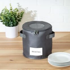 New π Honey Can Do Gray 8″ Round Dinnerware Storage Box π